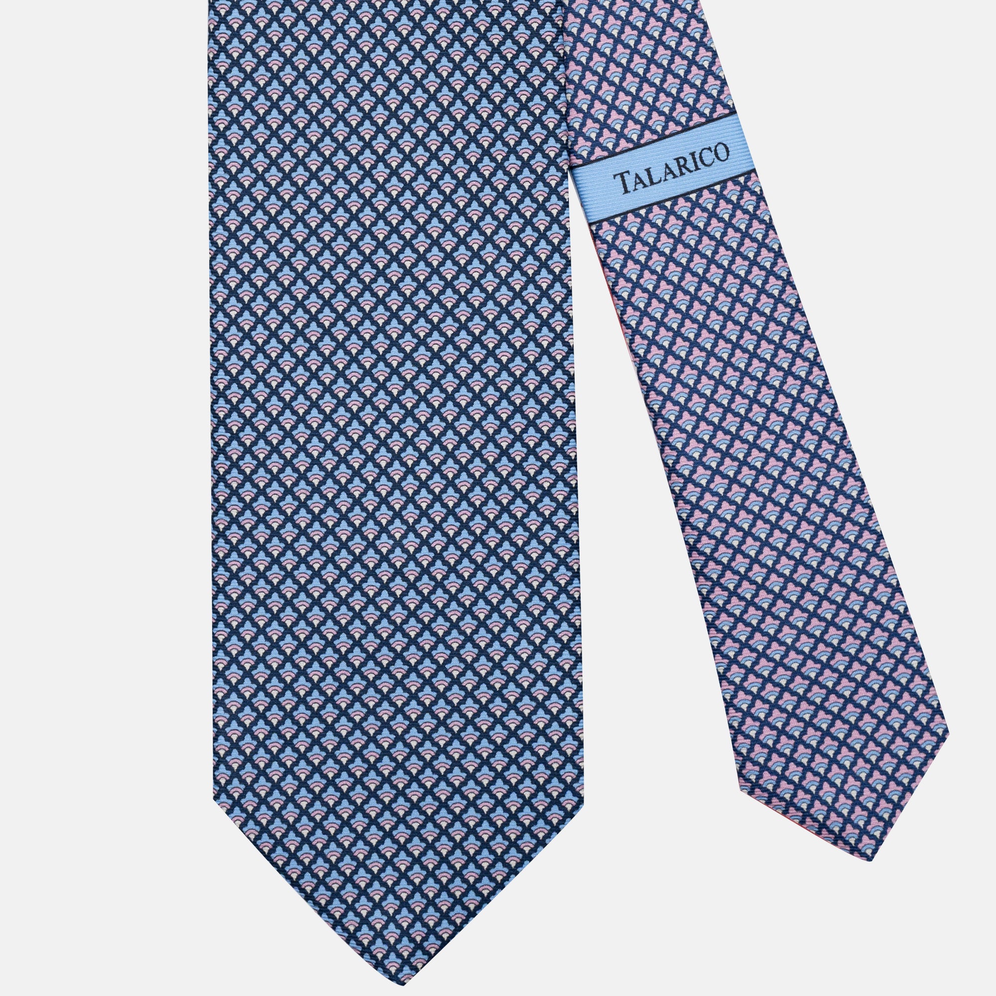 Cravatta 3 pieghe in Seta Micro Fantasia Blu Celeste/Rosa - JA302-2
