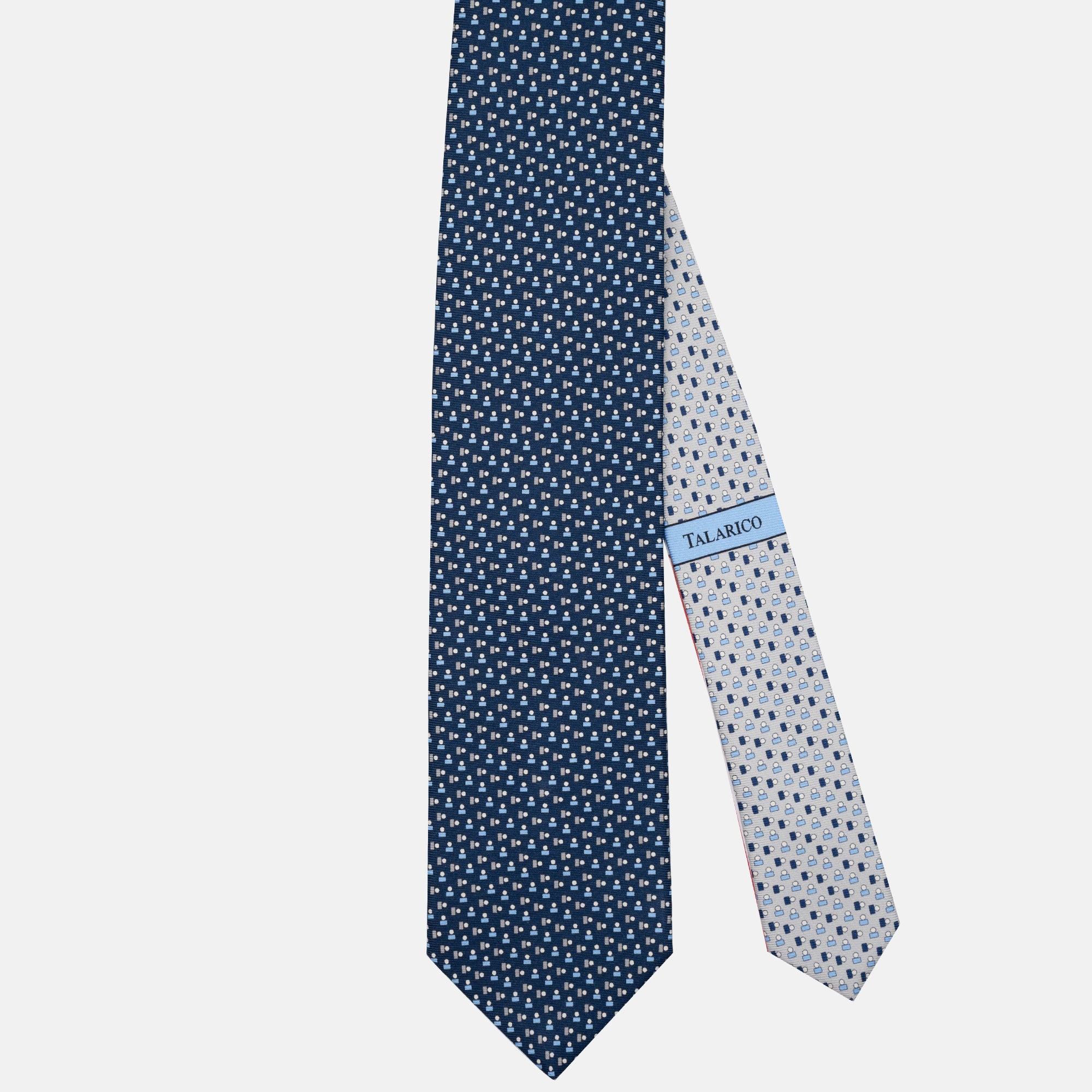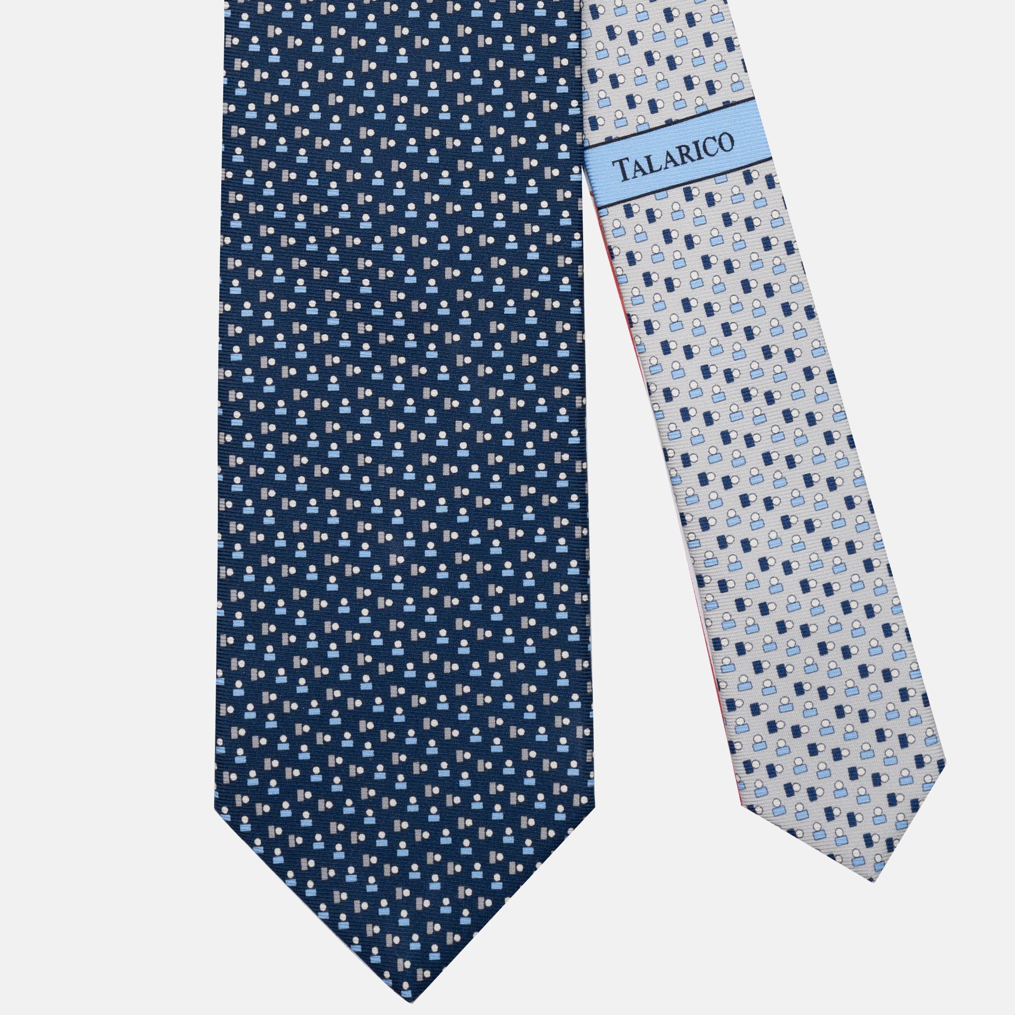 Cravatta 3 pieghe in Seta Micro Fantasia Blu Grigio - JA301-1
