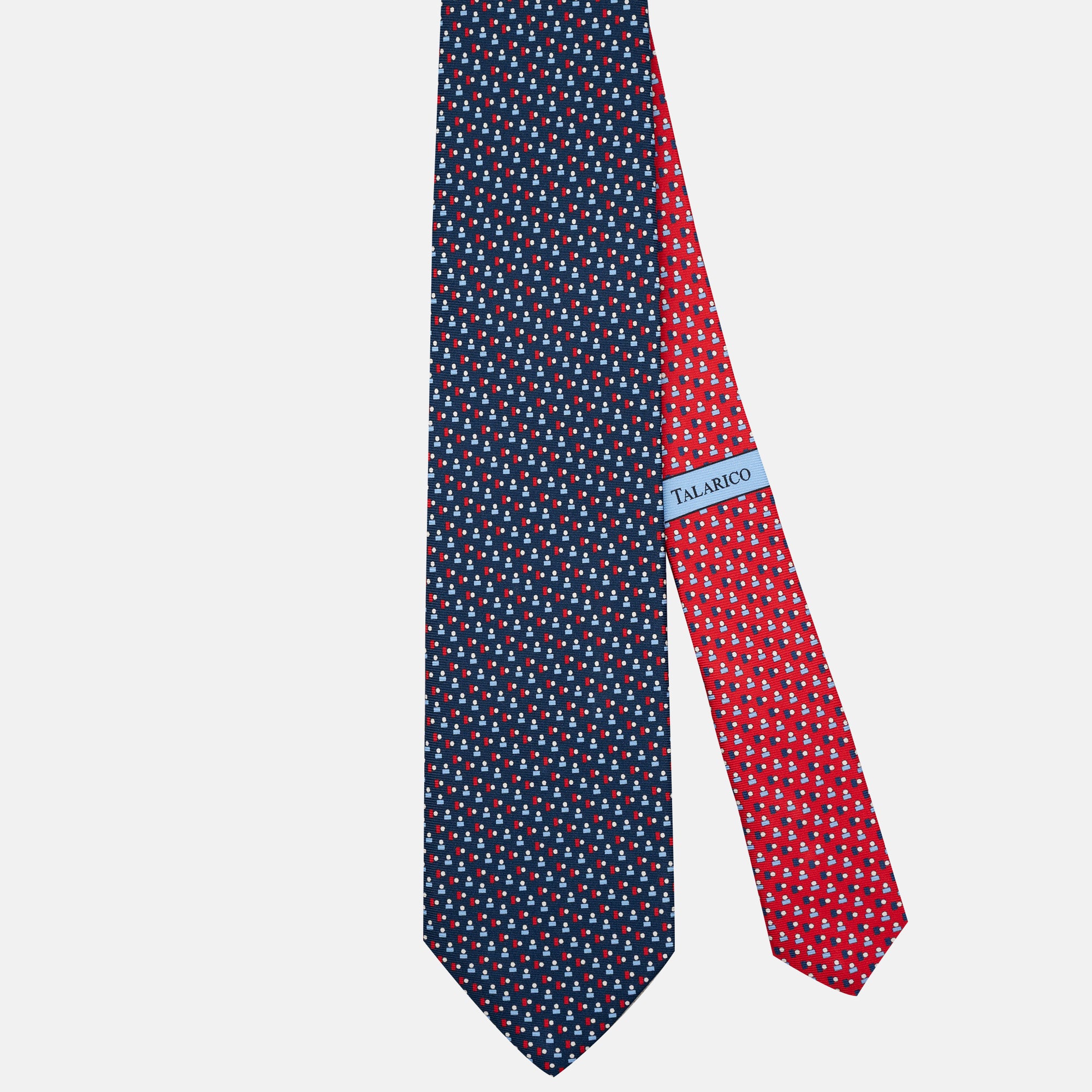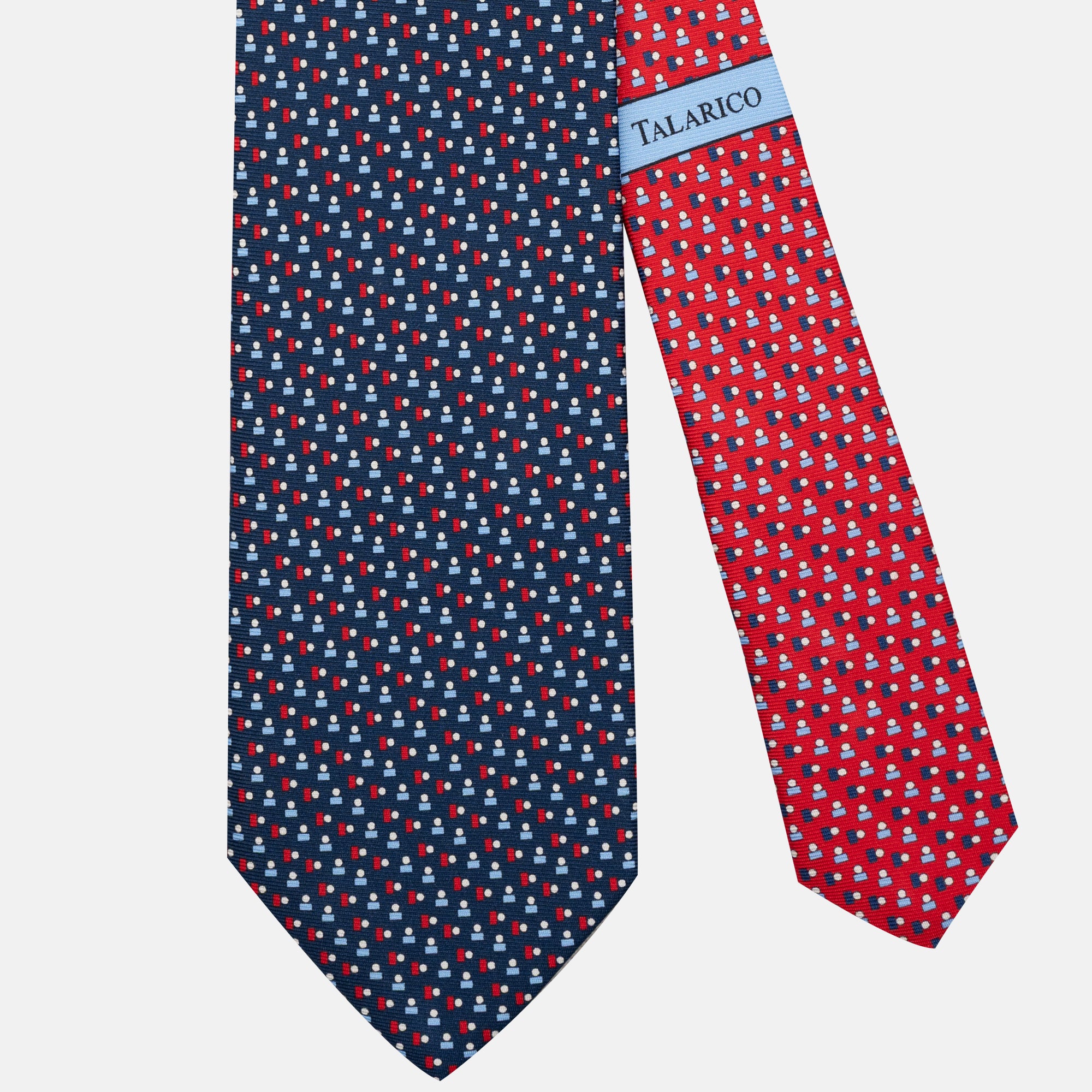 Cravatta 3 pieghe in Seta Micro Fantasia Blu Rosso - JA301-3