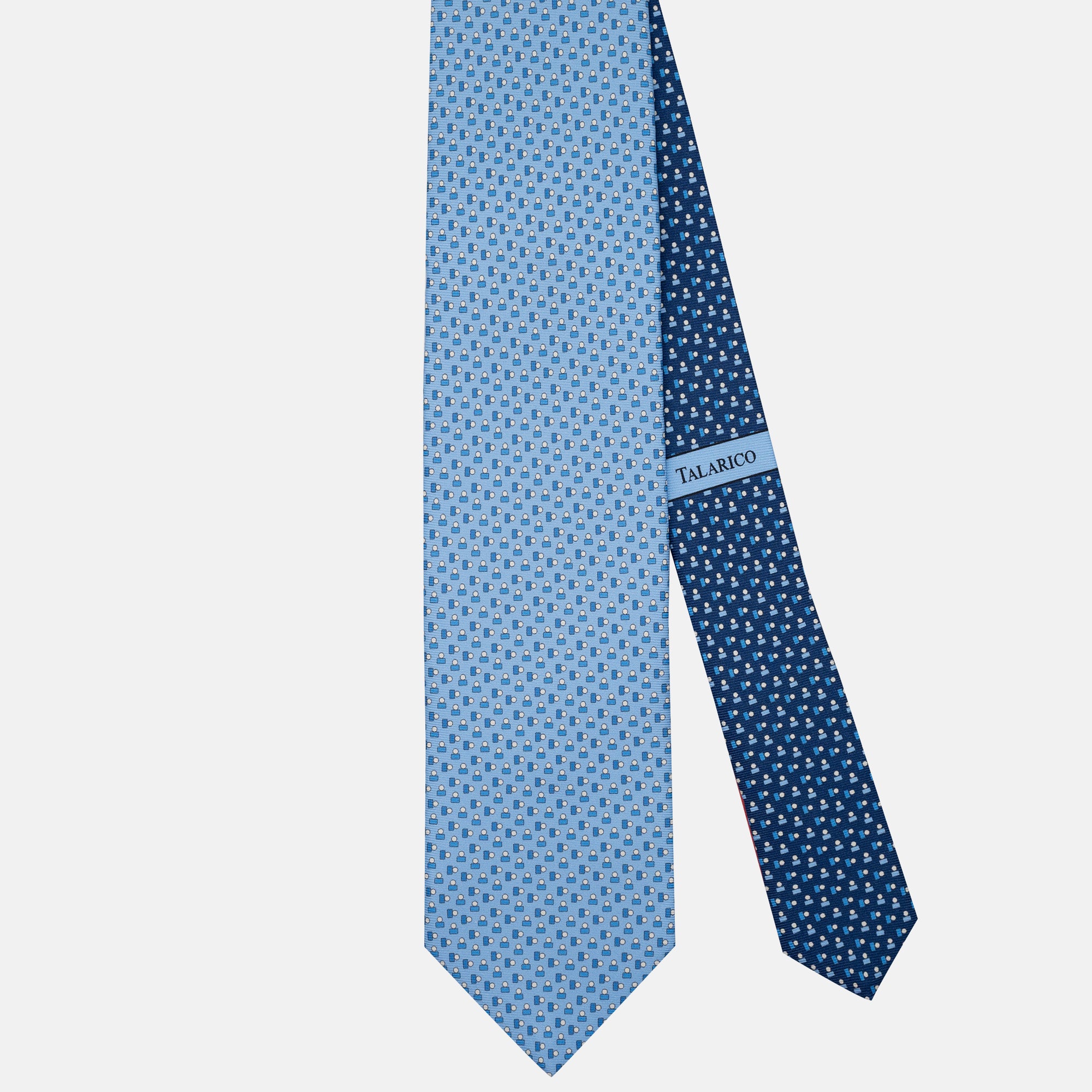 Cravatta 3 pieghe in Seta Micro Fantasia Celeste Blu - JA301-4