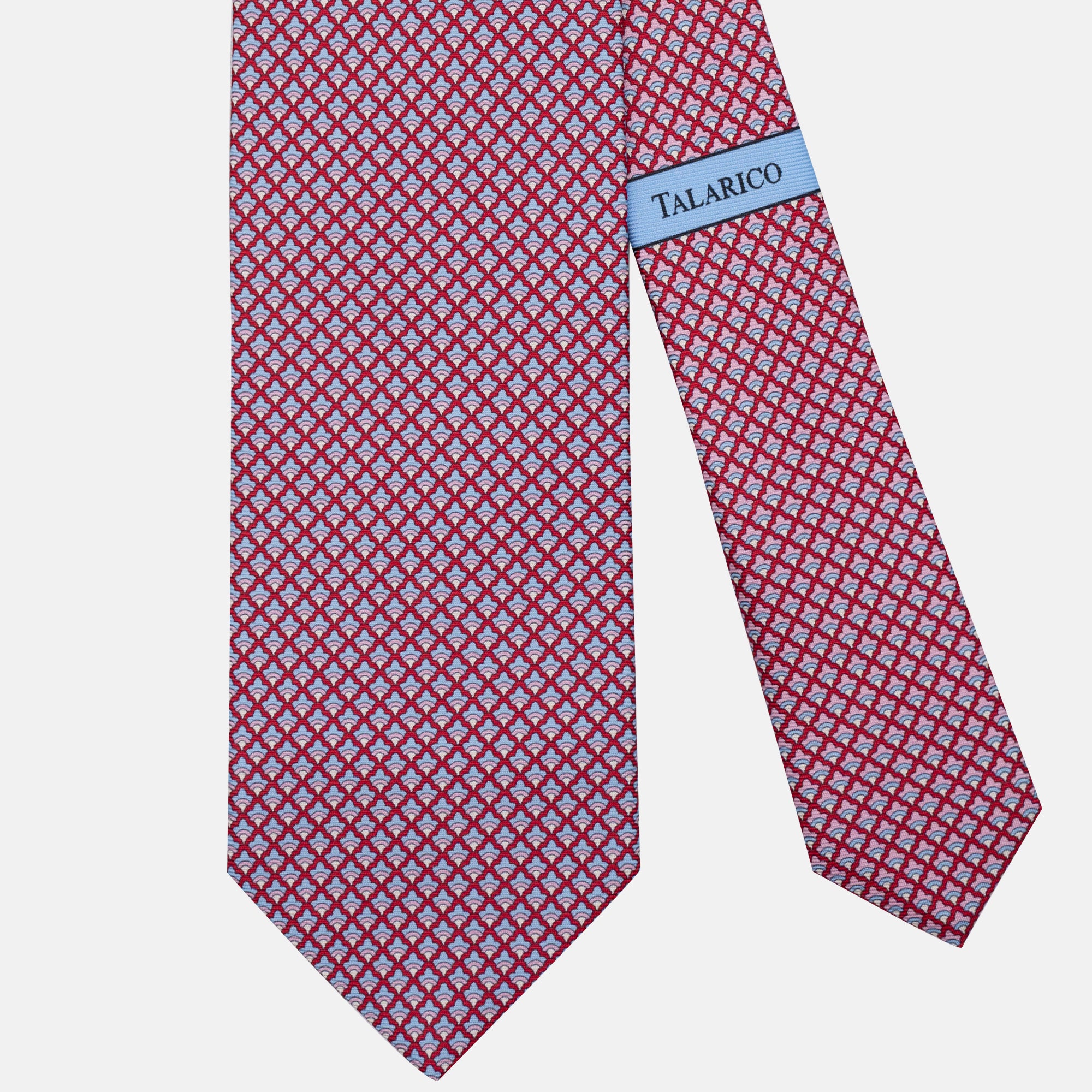 Cravatta 3 pieghe in Seta Micro Fantasia Rosso Celeste/Rosa - JA302-1