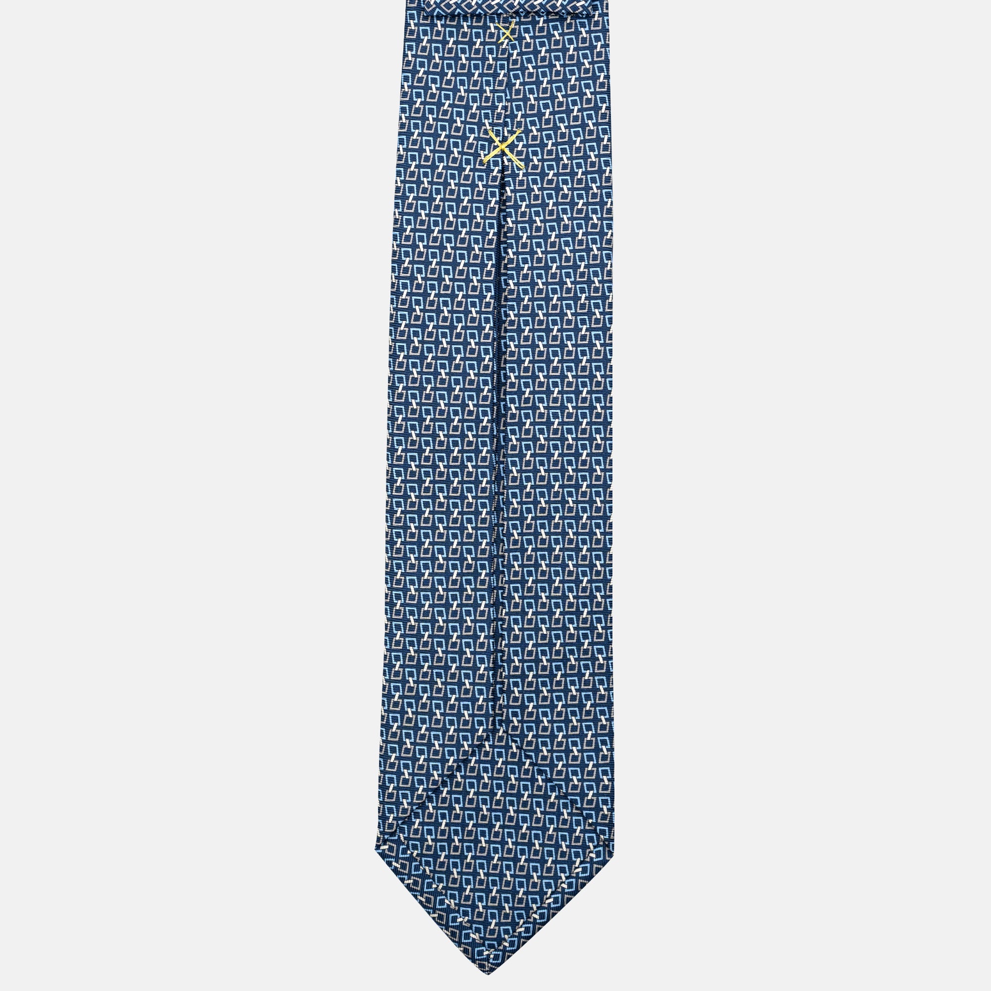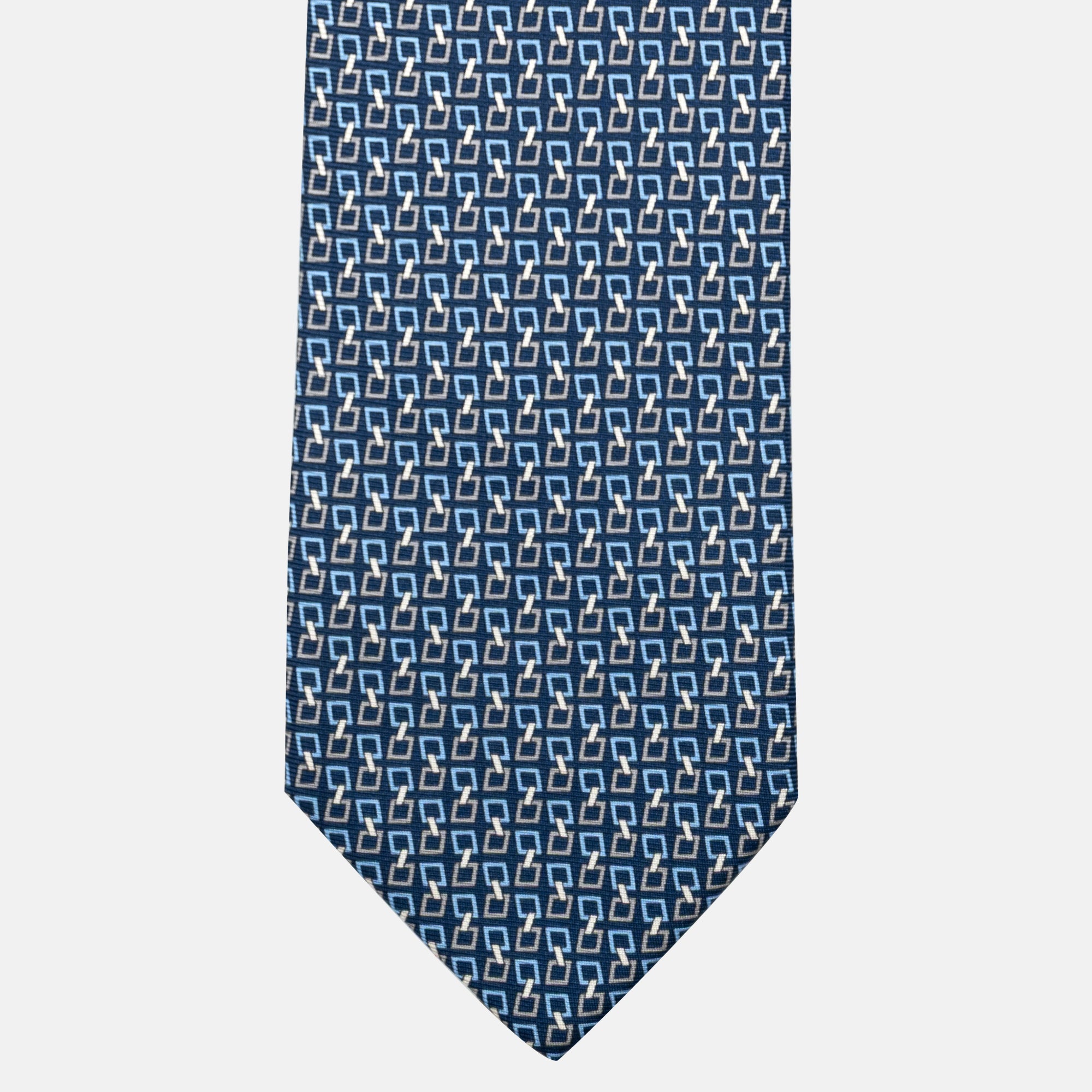 7-Fold Silk Tie with Chain Pattern in Blue and Grey - JA057083-2