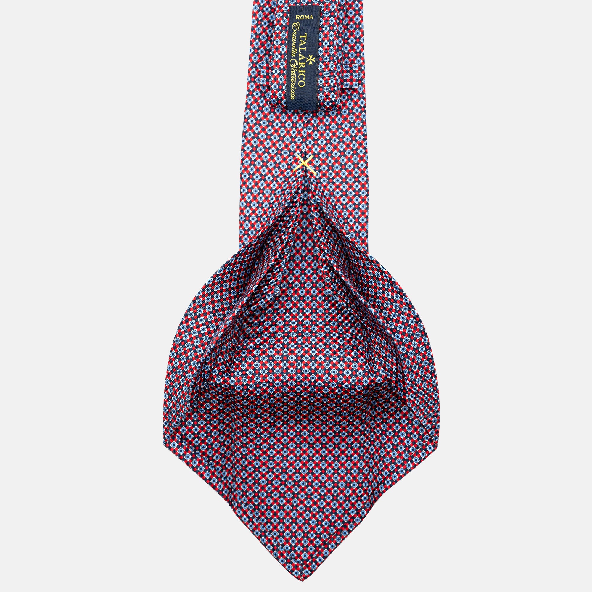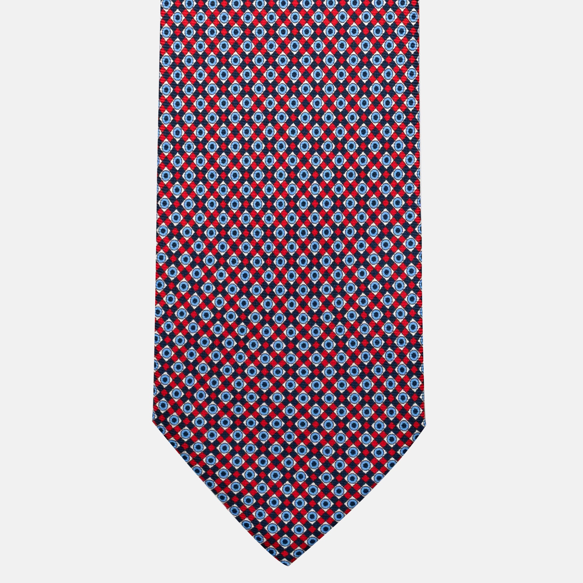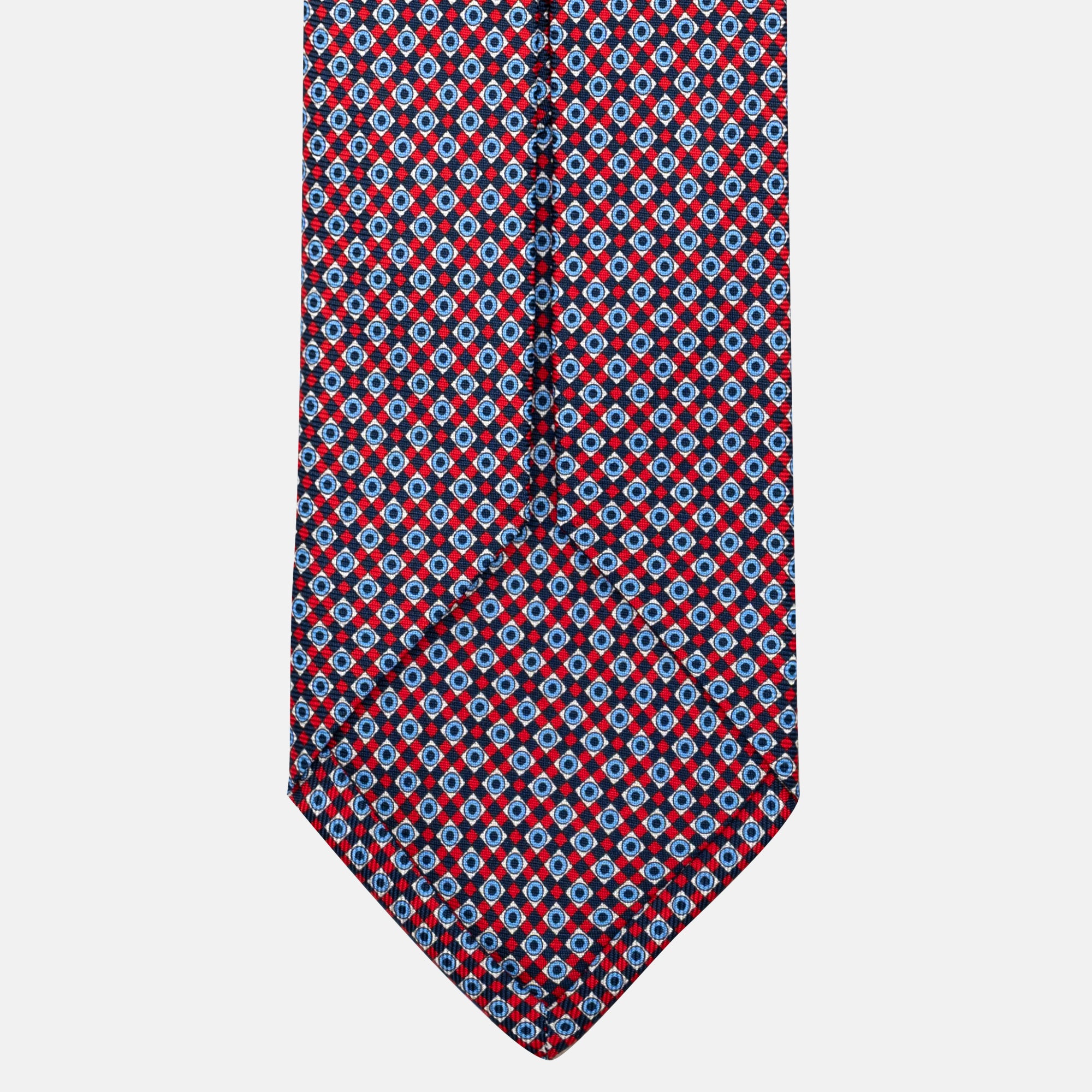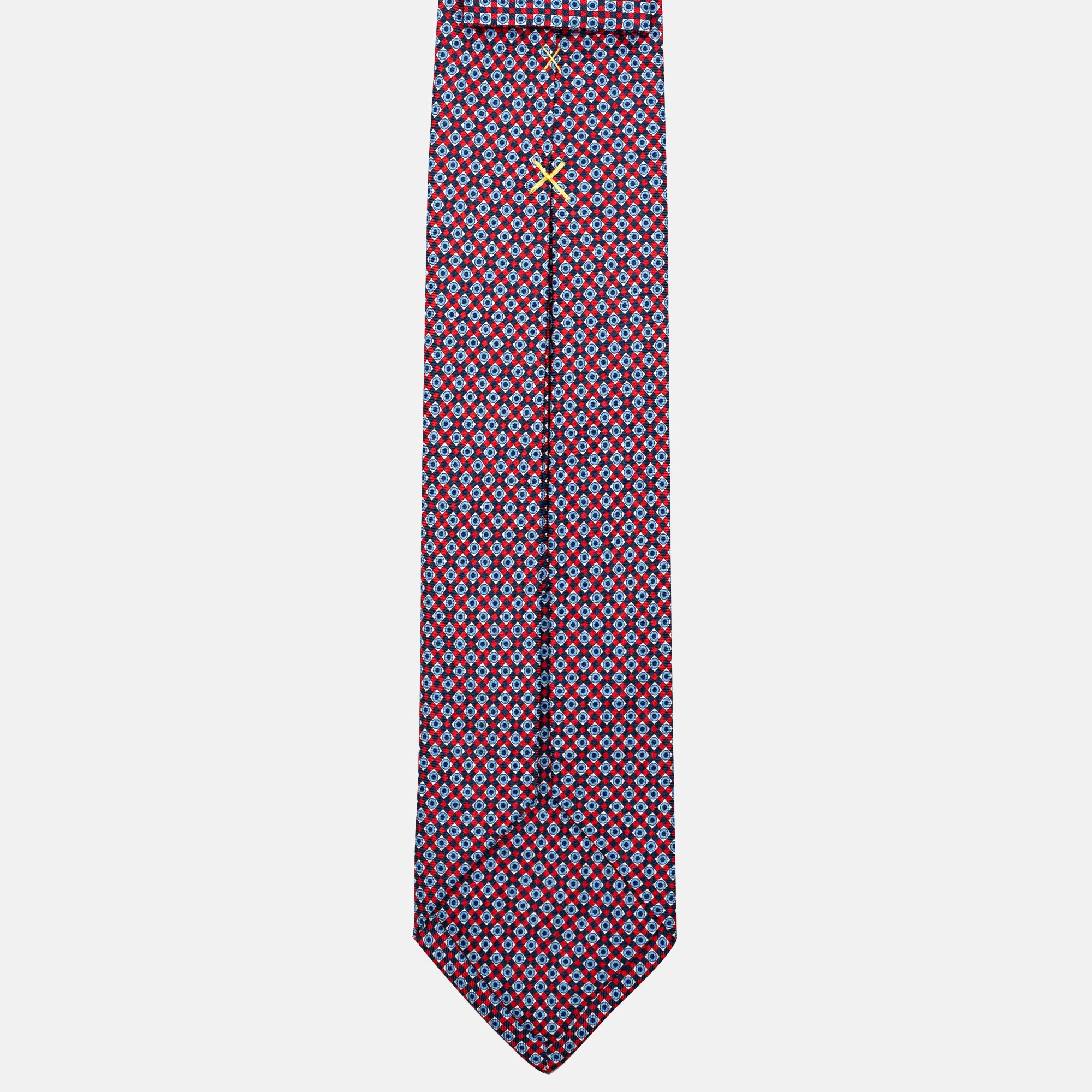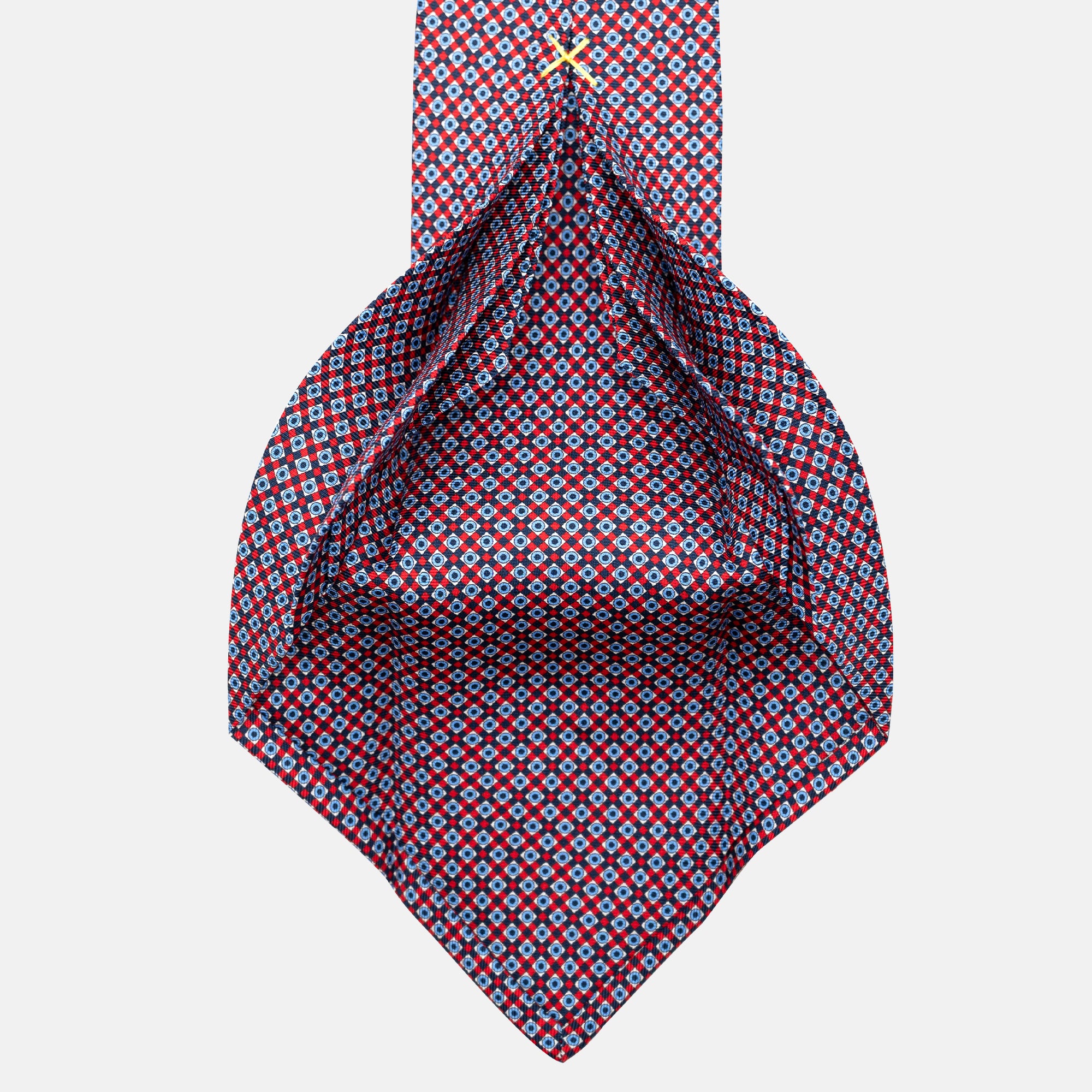 7-Fold Silk Tie with Geometric Pattern, Blue and Red - JA055945-2
