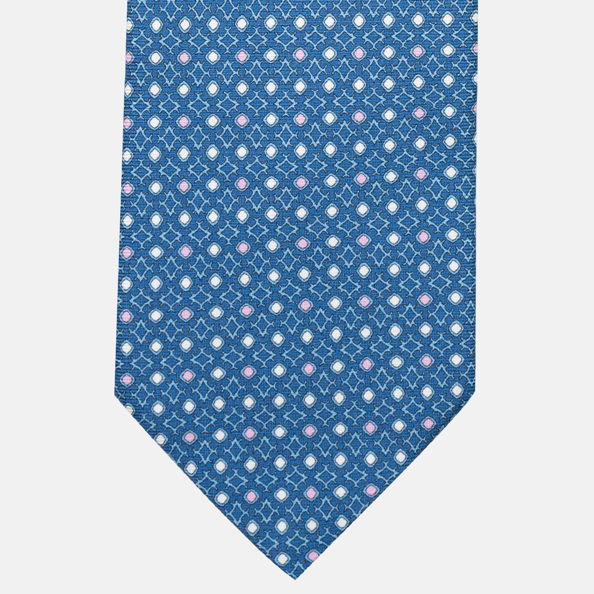 Cravatta 3 pieghe in Seta Fantasia Geometrica Azzurro Rosa - DSC_3942