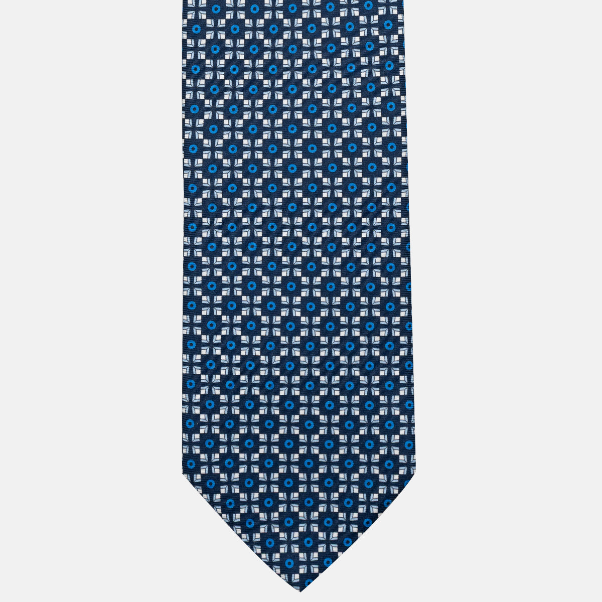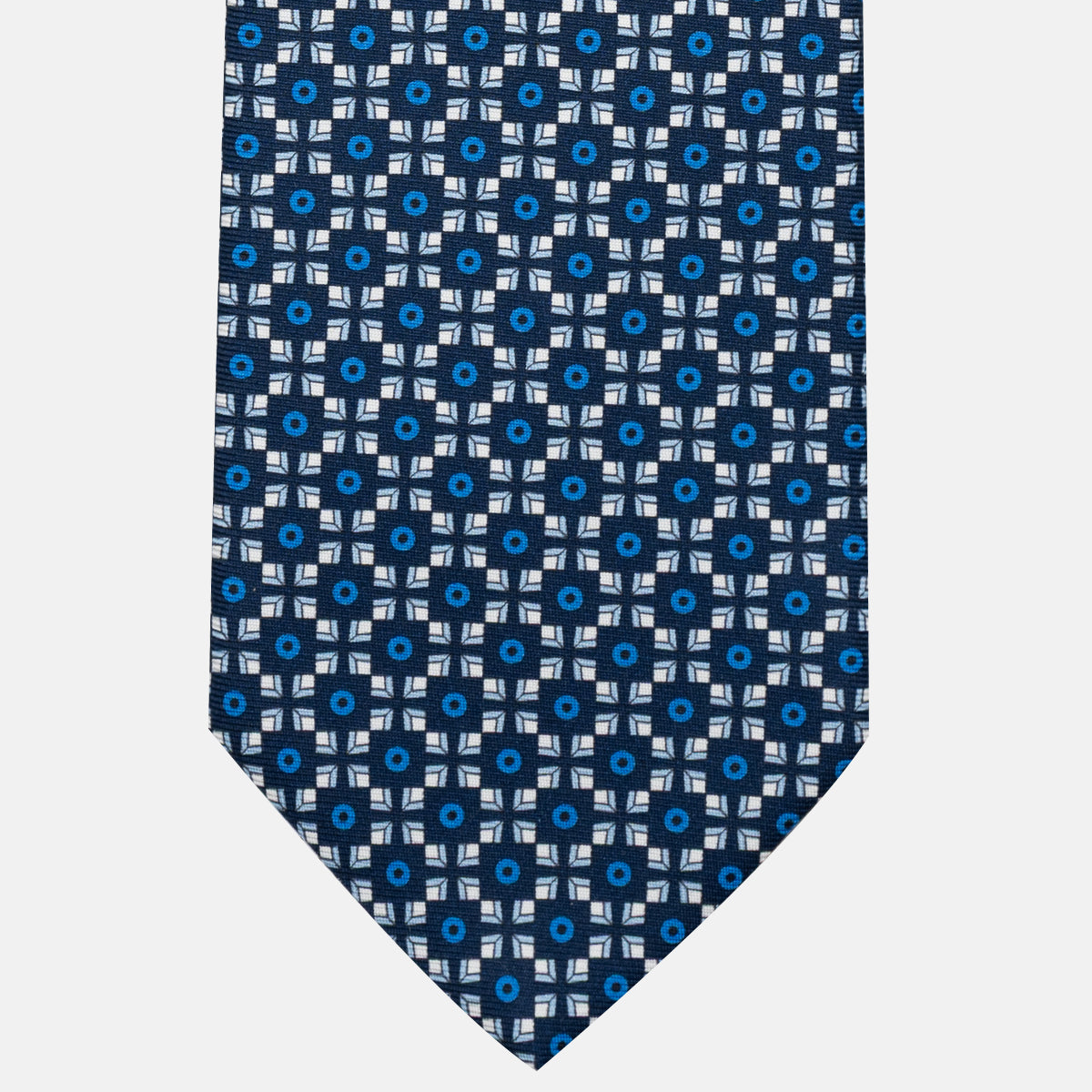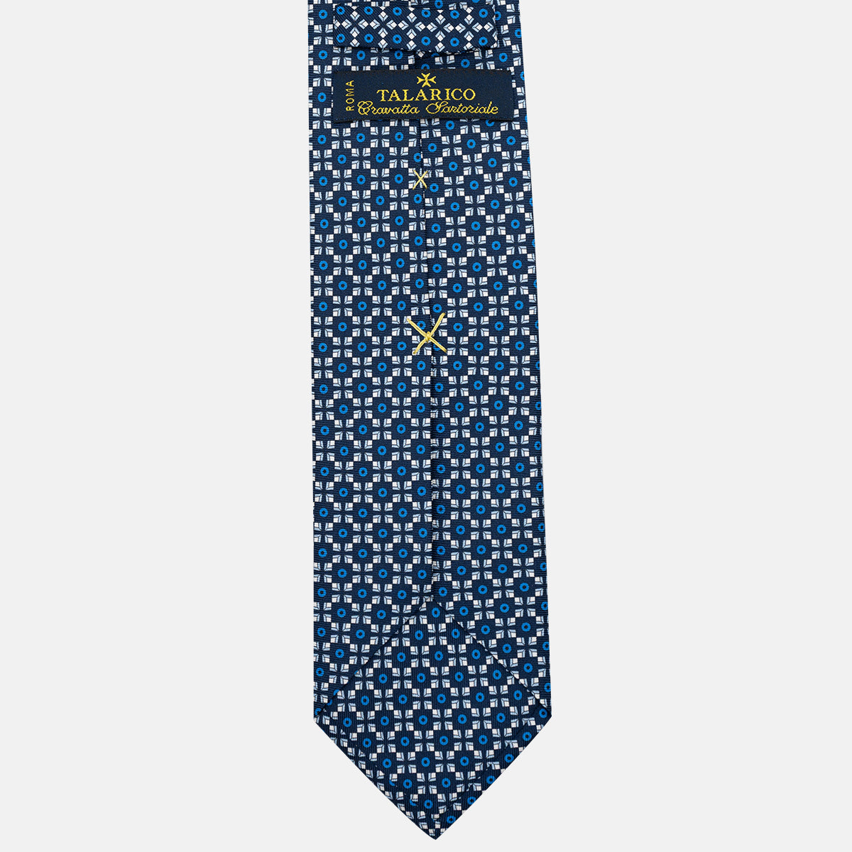 Cravatta 3 pieghe in Seta Fantasia Geometrica Blu - DSC_4014