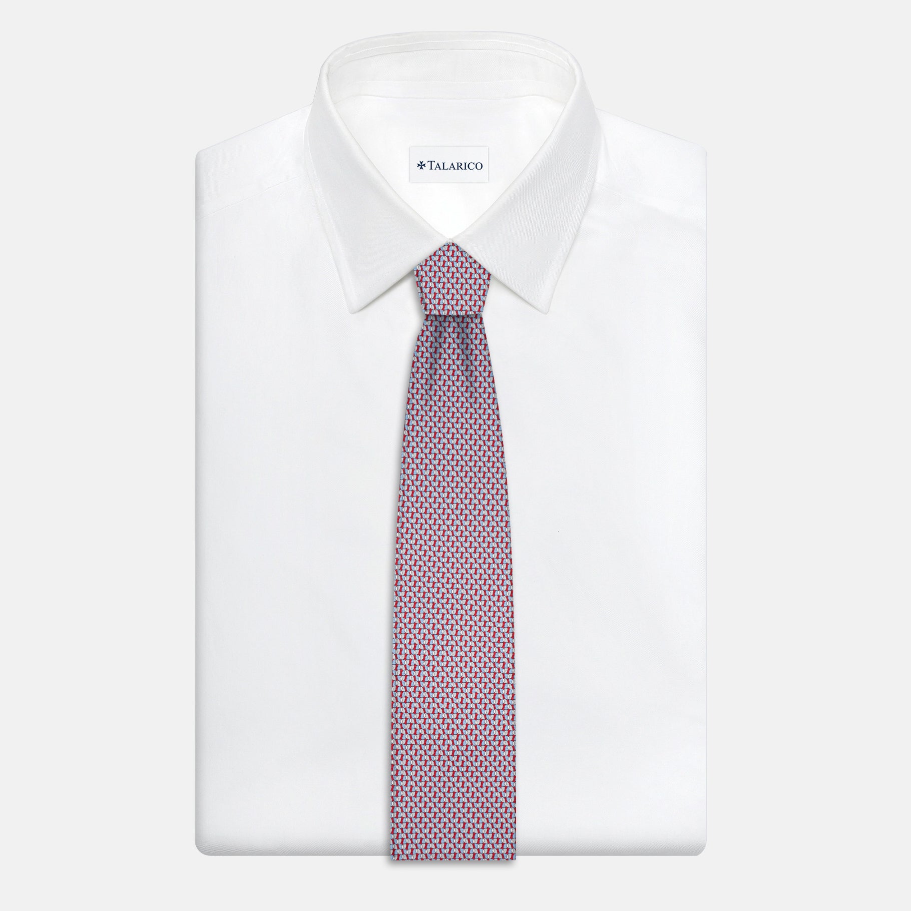 Cravatta 3 pieghe in Seta, Fantasia Geometrica, Rosso - JA056123-8