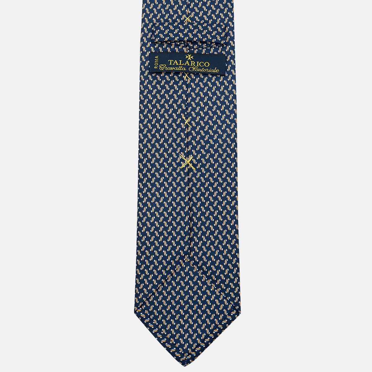 Le cravatte Talarico 3 pieghe sono realizzate in solo 3 esemplari per Variante. Il tessuto è in seta twill 36 once prodotto in Italia.