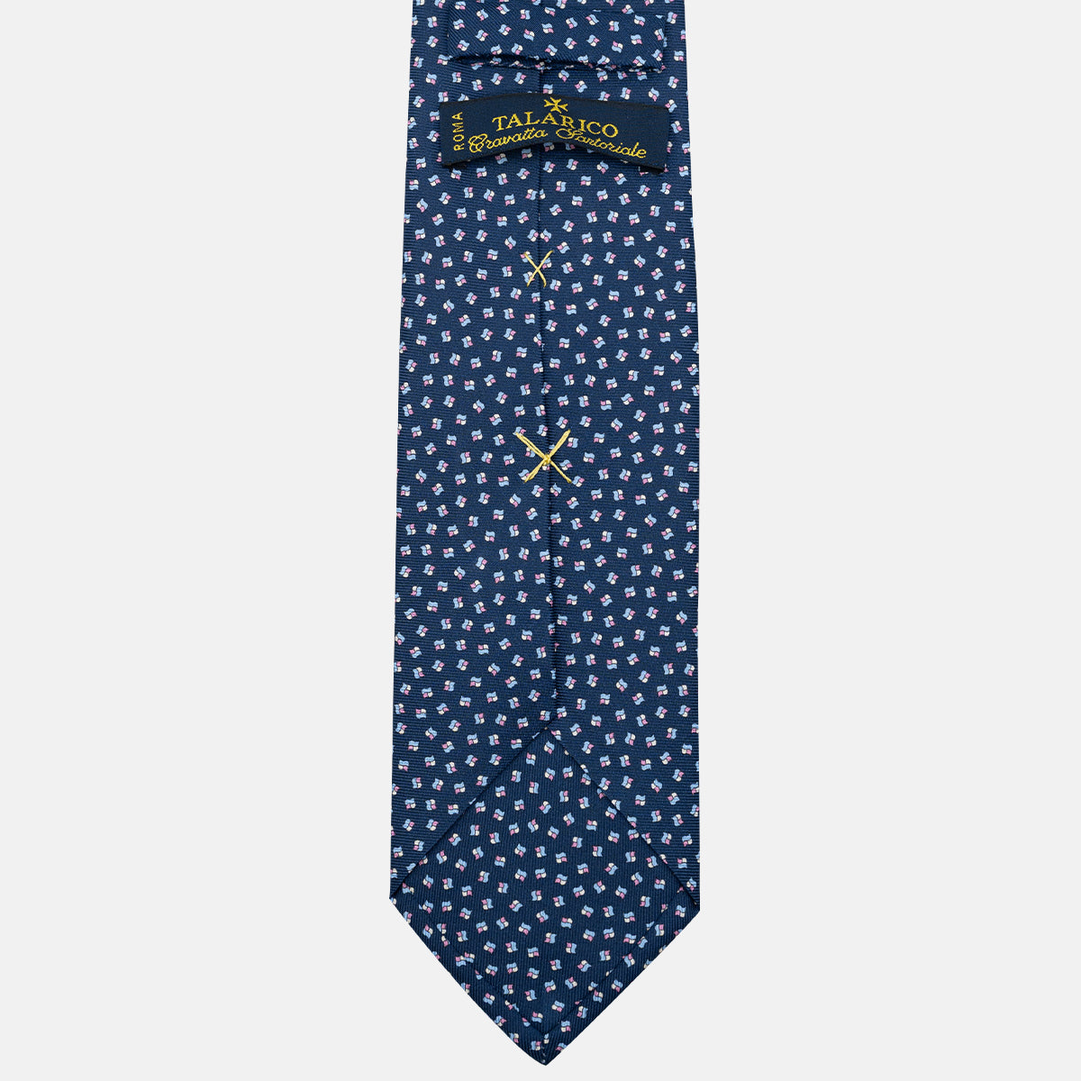 Le cravatte Talarico 3 pieghe sono realizzate in solo 3 esemplari per Variante. Il tessuto è in seta twill 36 once prodotto in Italia.