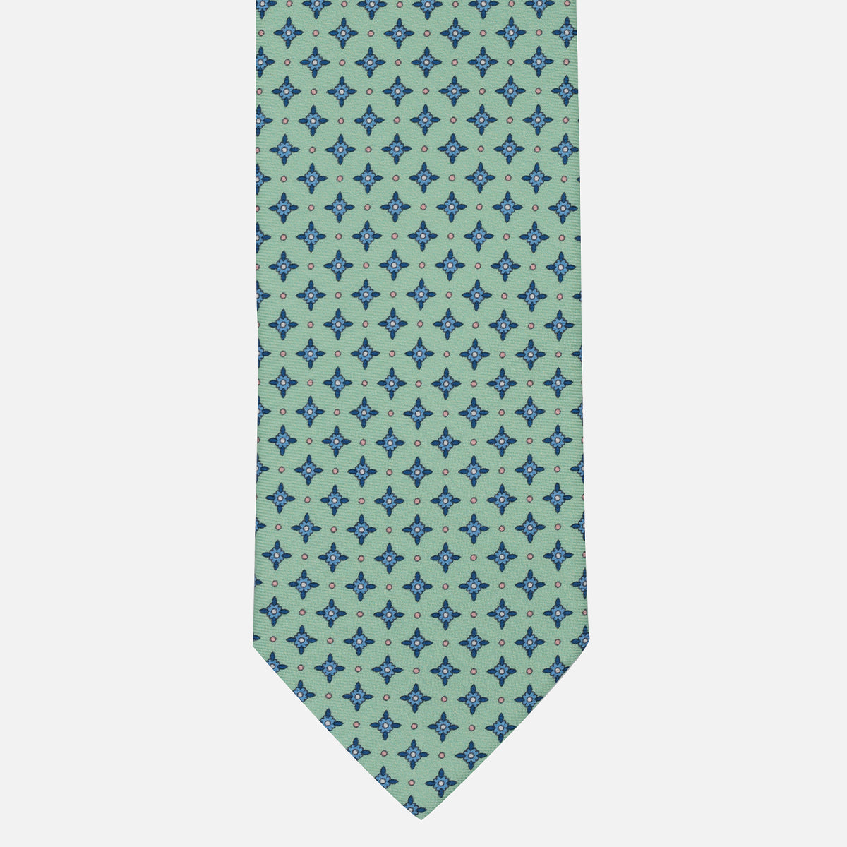 Cravatta Collezione 1999 in Seta Fantasia Floreale Verde Celeste