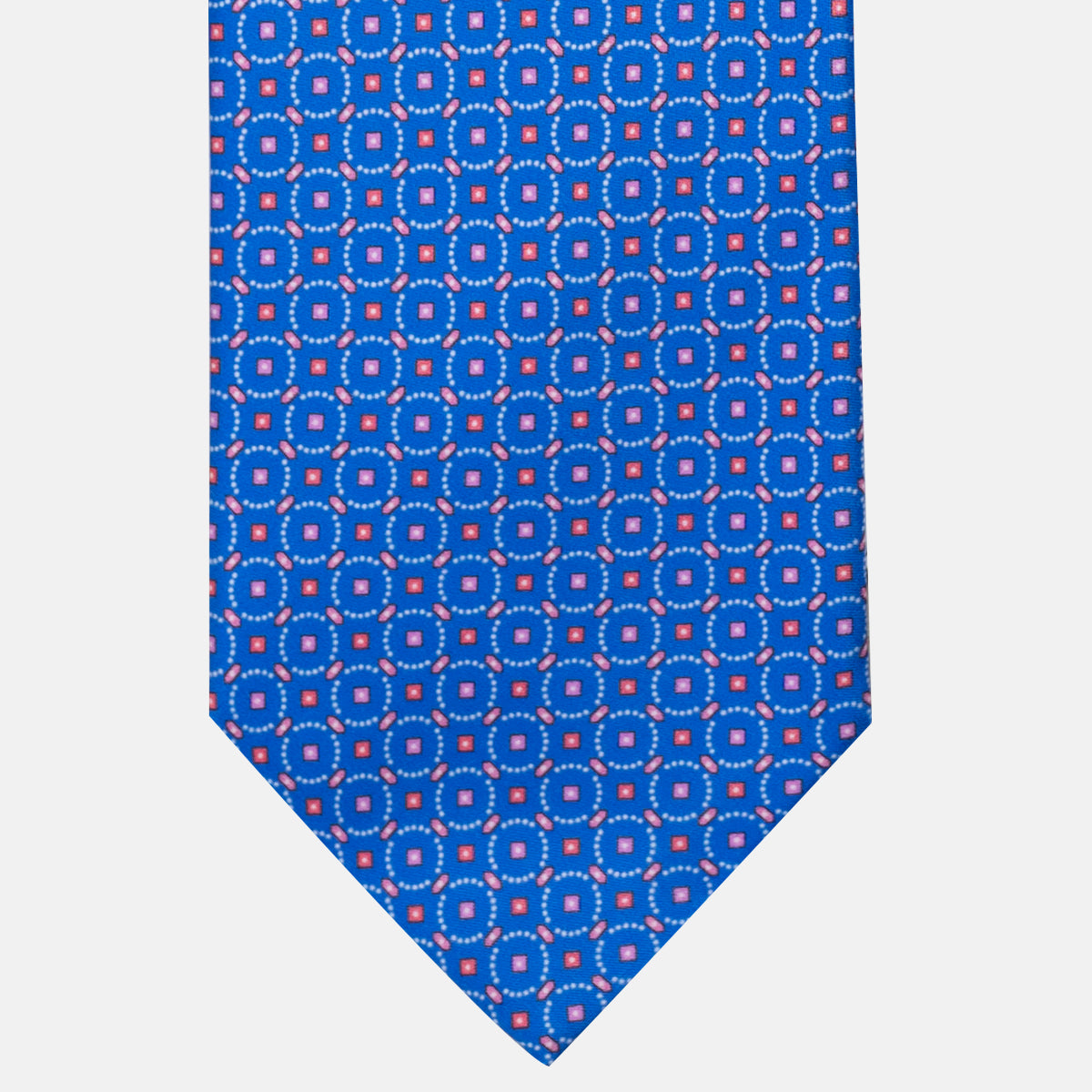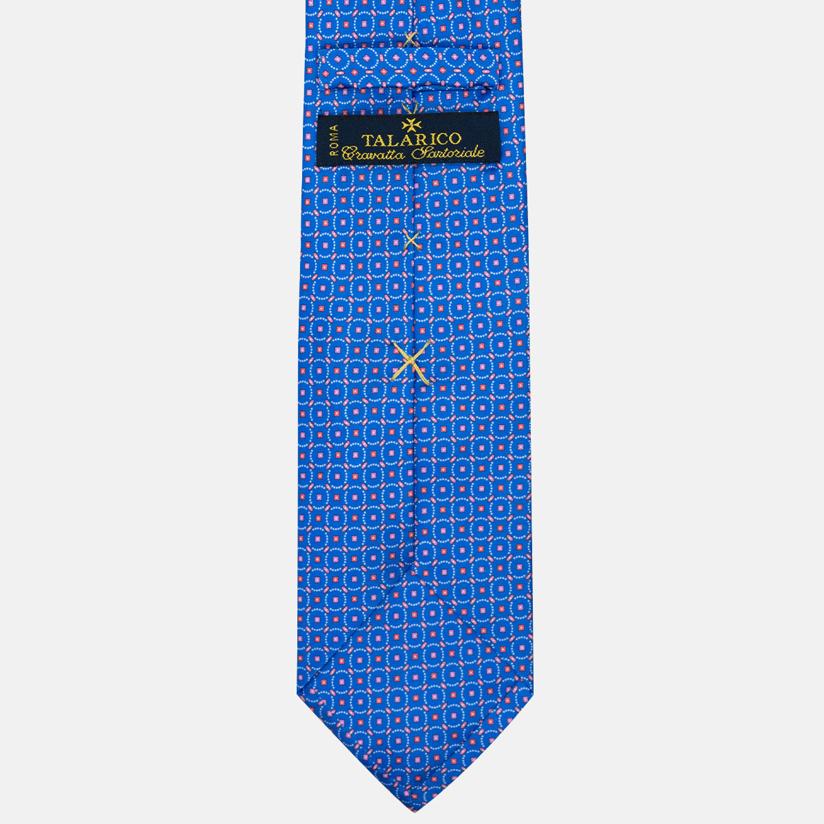 Cravatta 3 Pieghe in Raso Satin Fantasia Geometrica Azzurro - JA241002-2