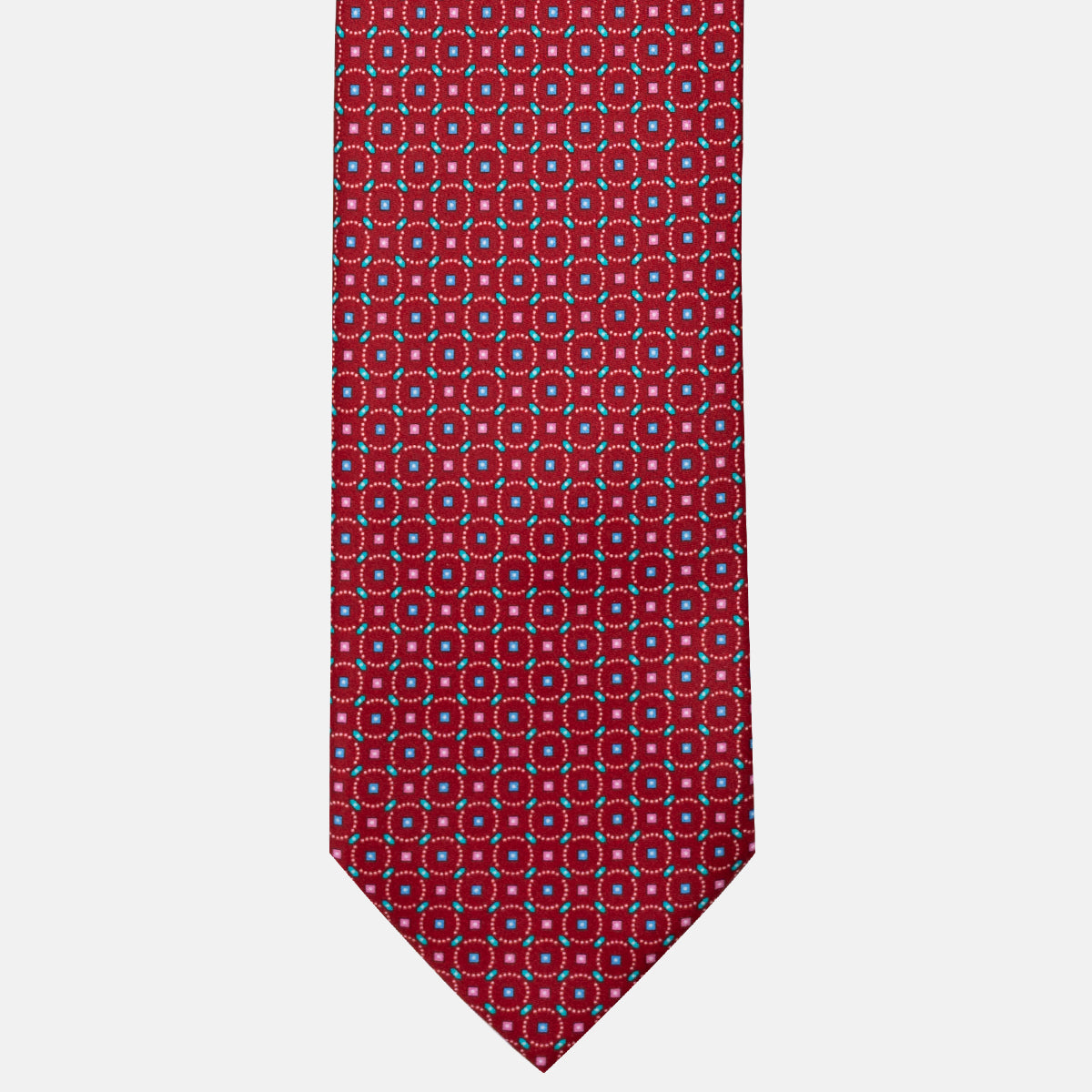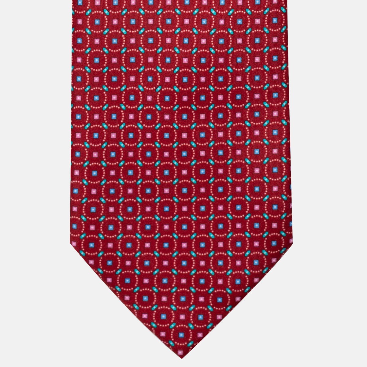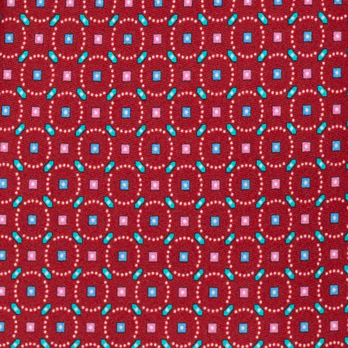 Cravatta 3 Pieghe in Raso Satin Fantasia Geometrica Rosso - JA241002-1