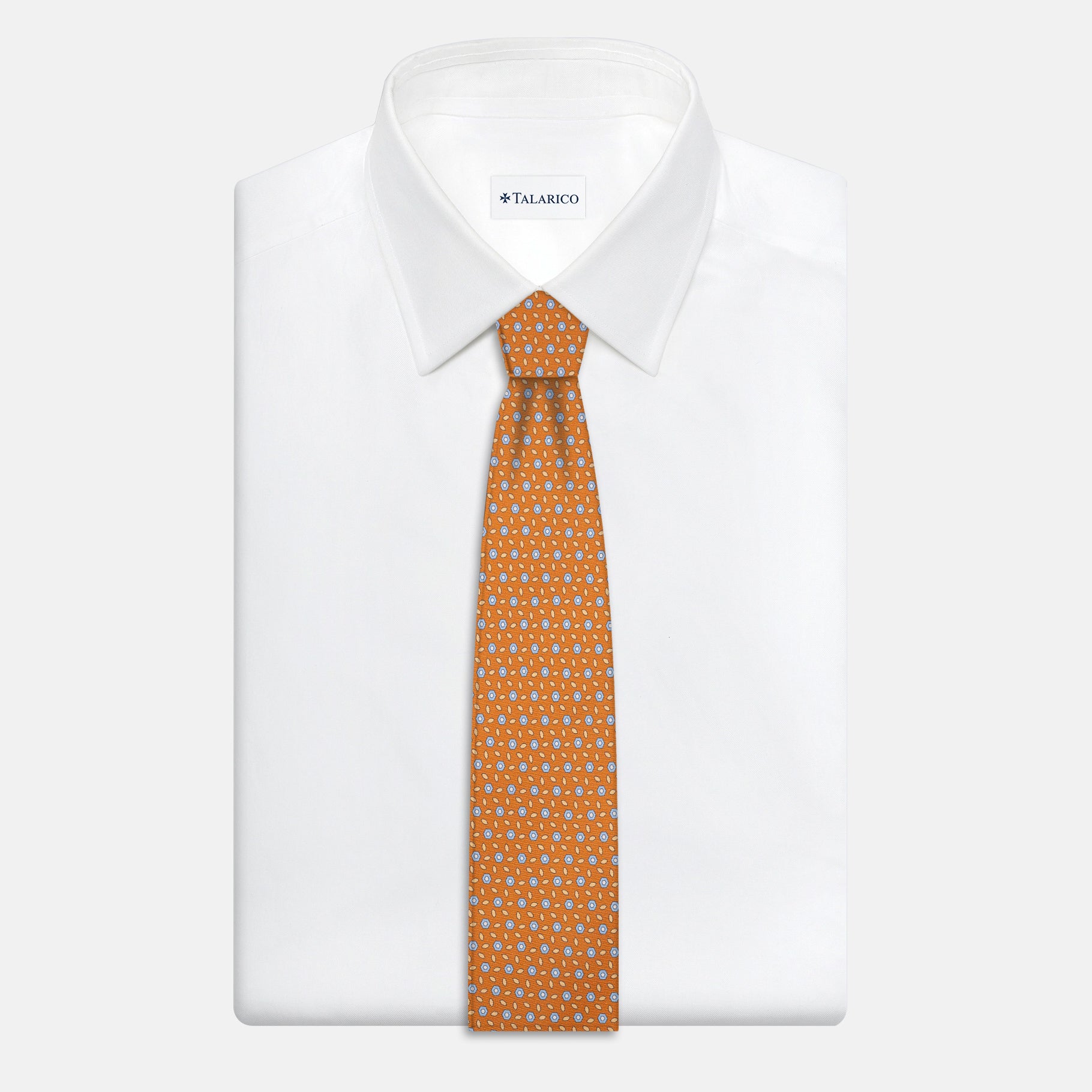 Cravatta 3 pieghe in Seta, Fantasia Floreale, Arancione - JA057079-2