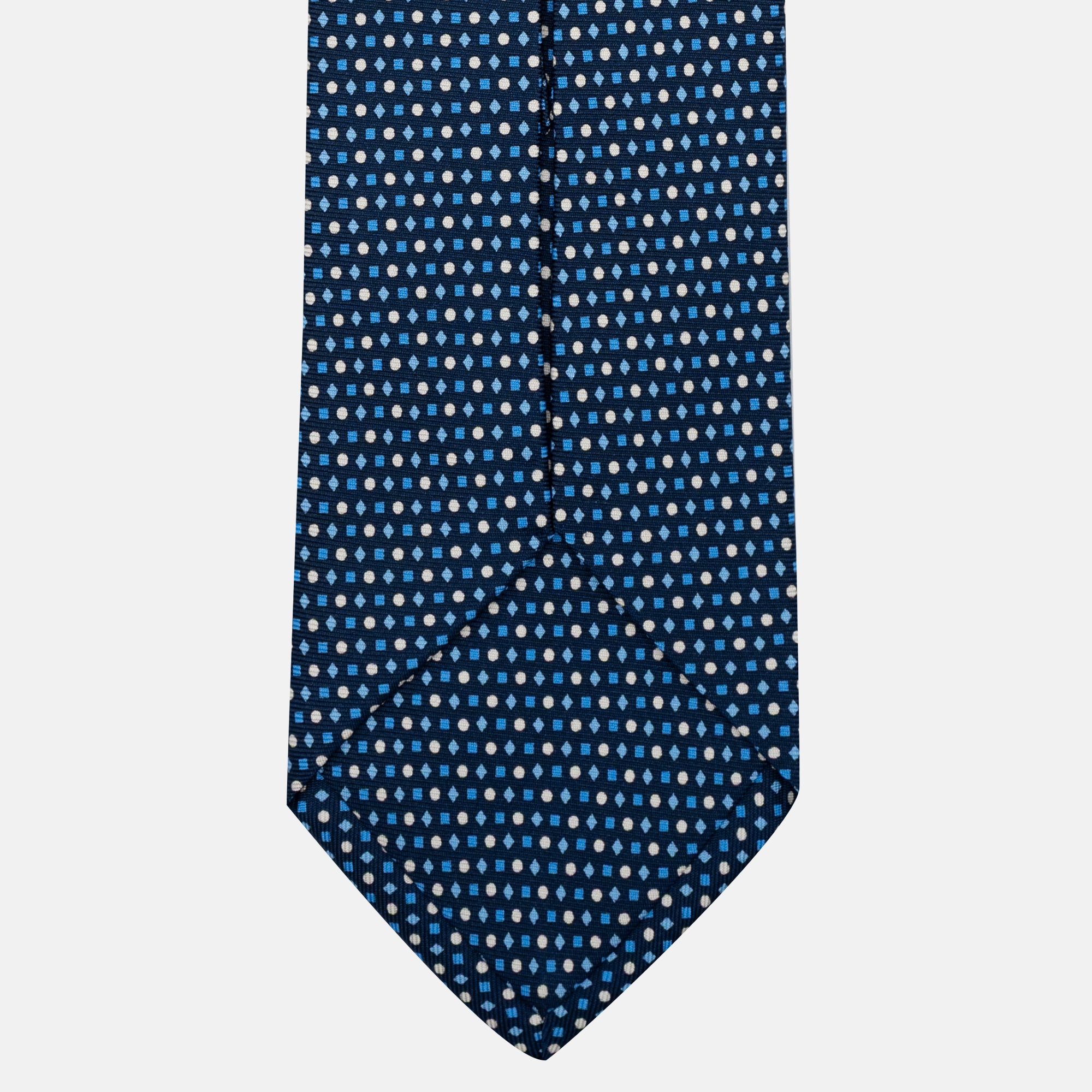 Cravatta 5 pieghe in seta Fantasia Geometrica Blu Celeste - JA056674-7