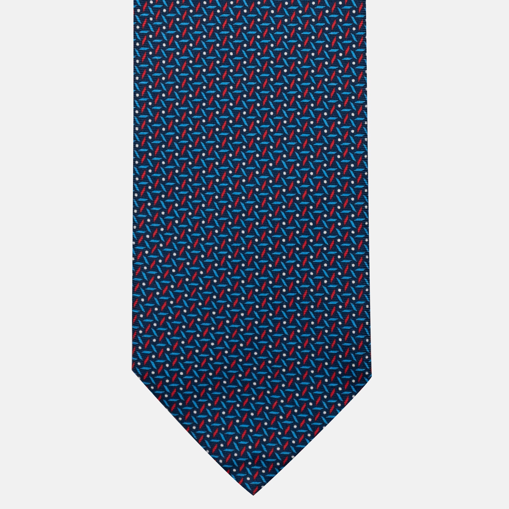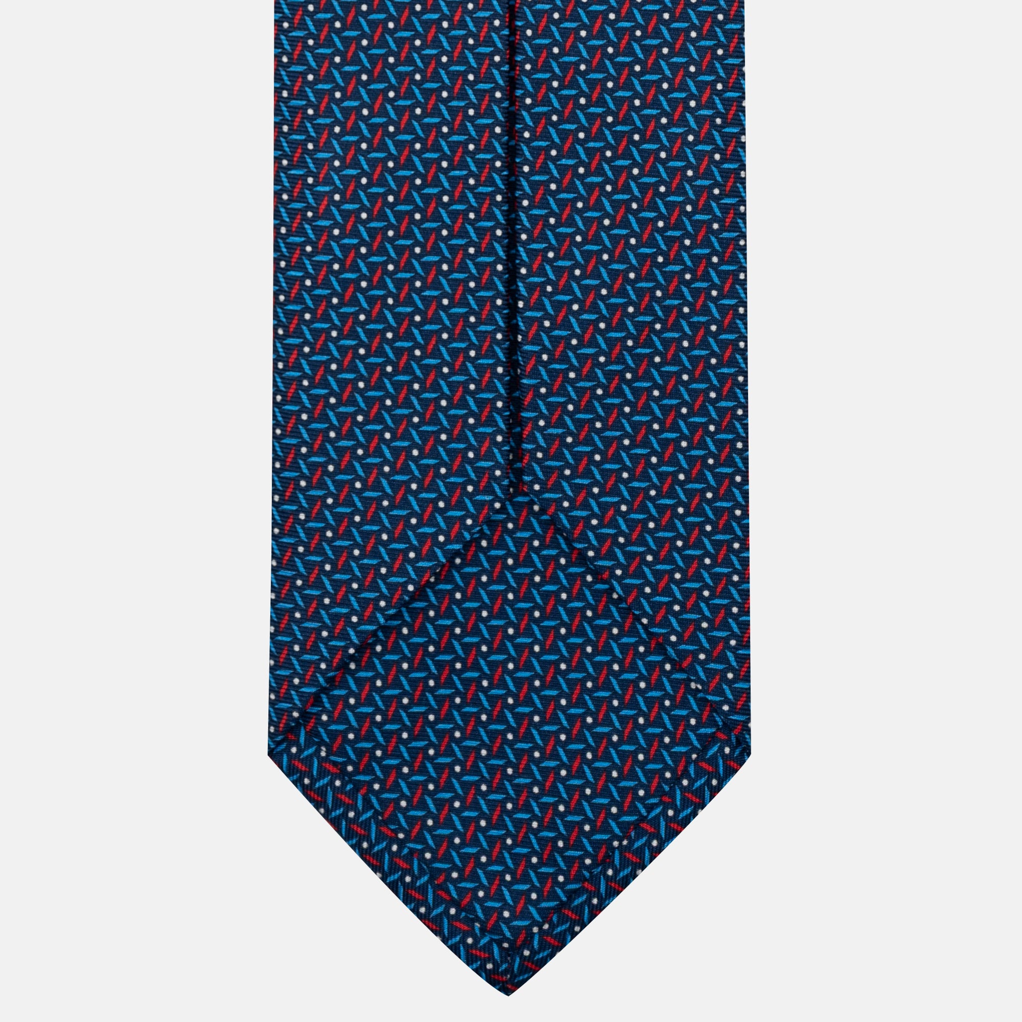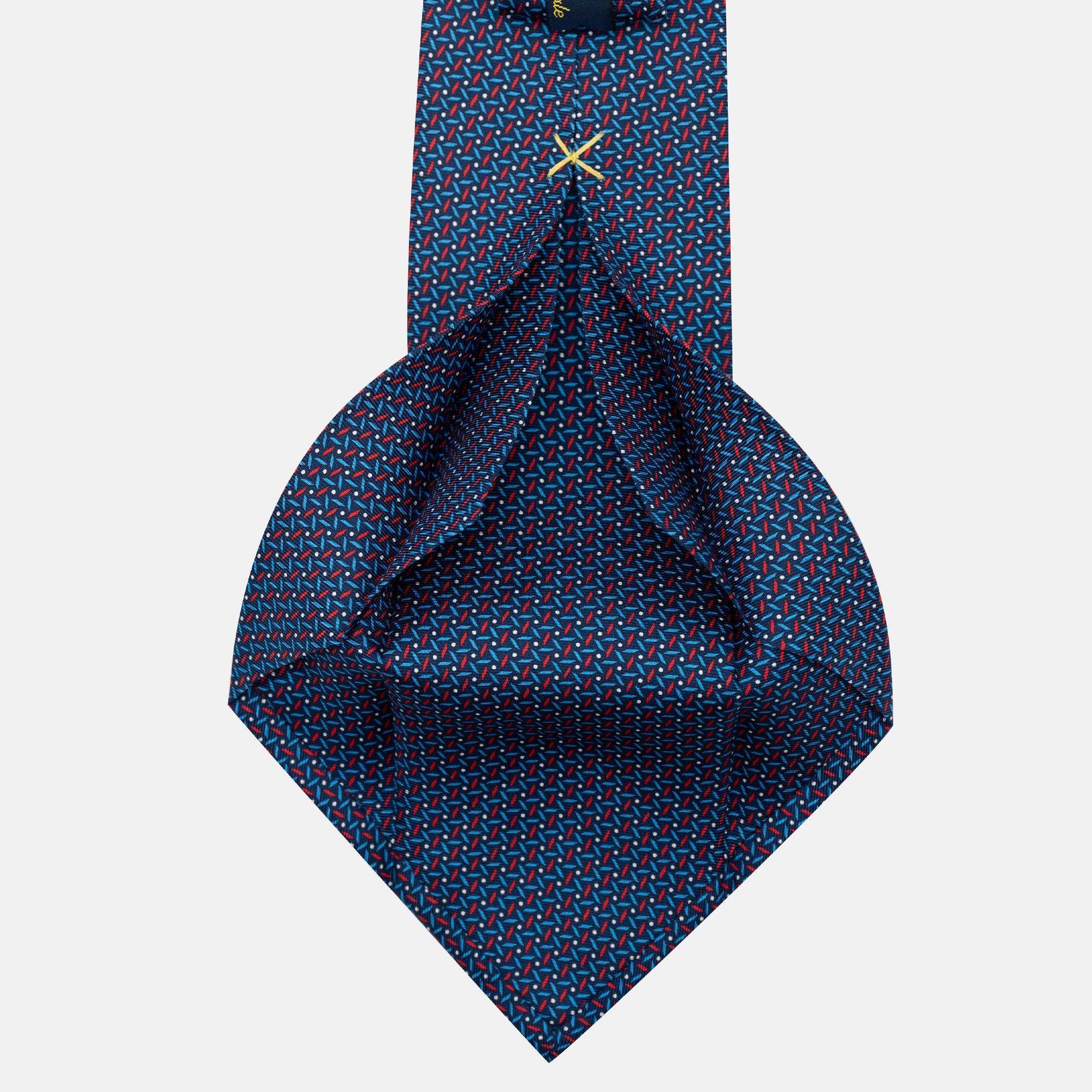 Cravatta 5 pieghe in seta Fantasia Geometrica Blu Rosso - DSC_4162