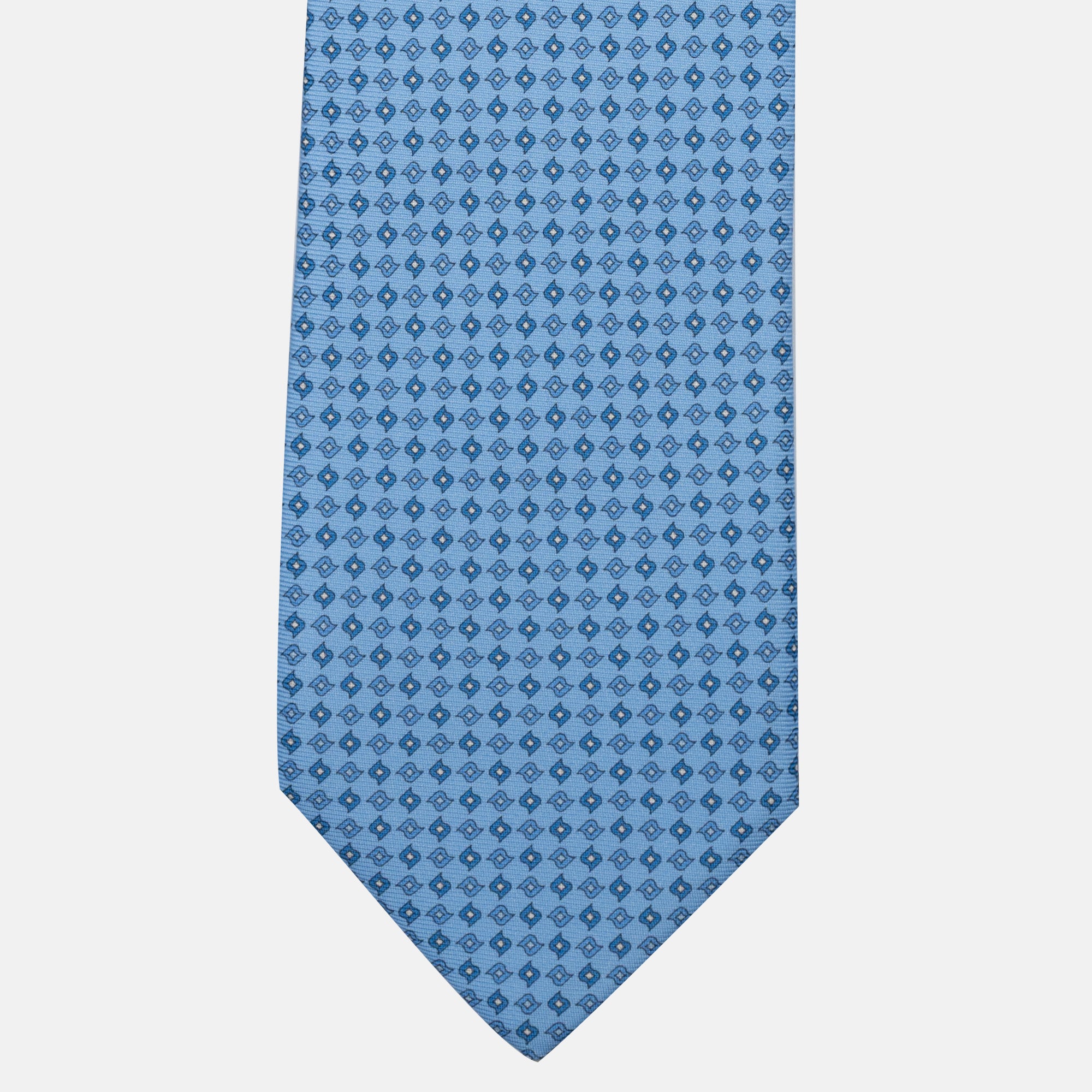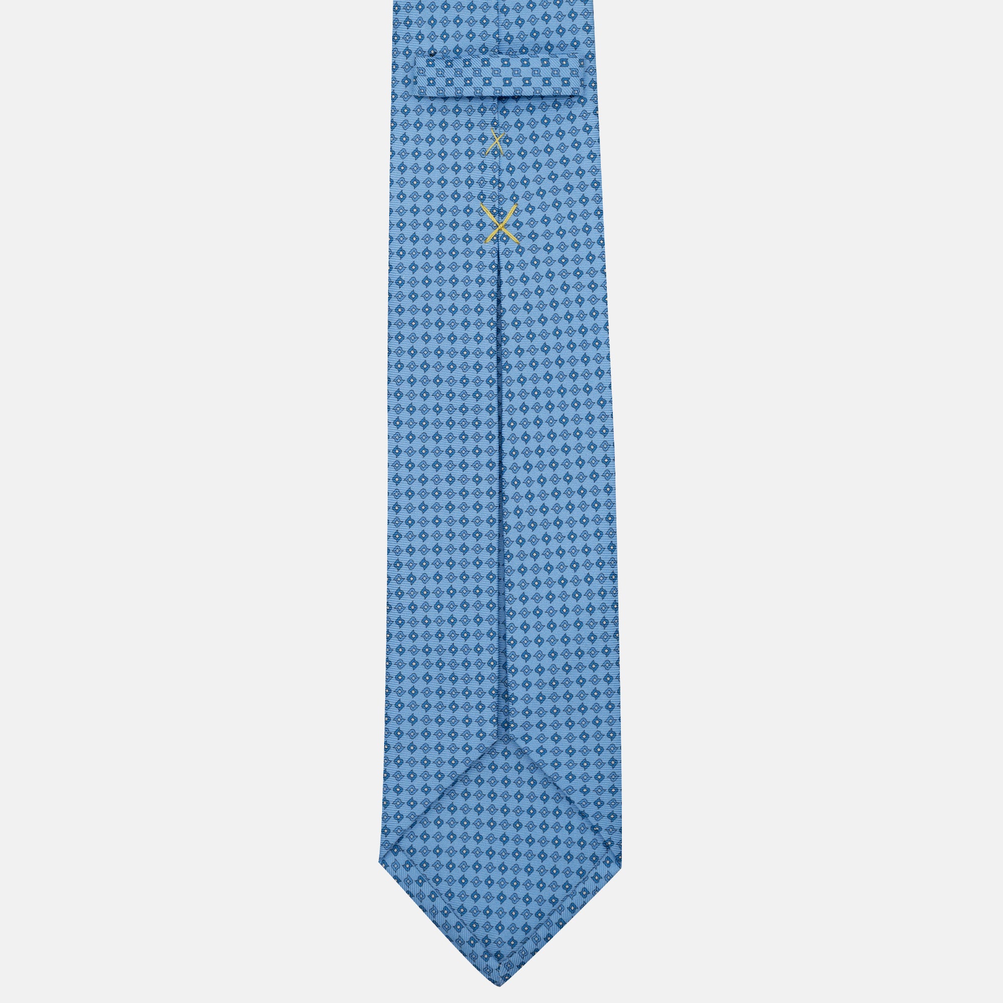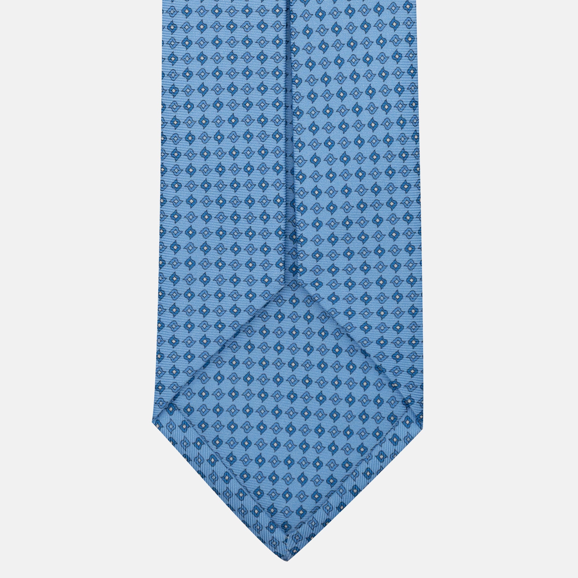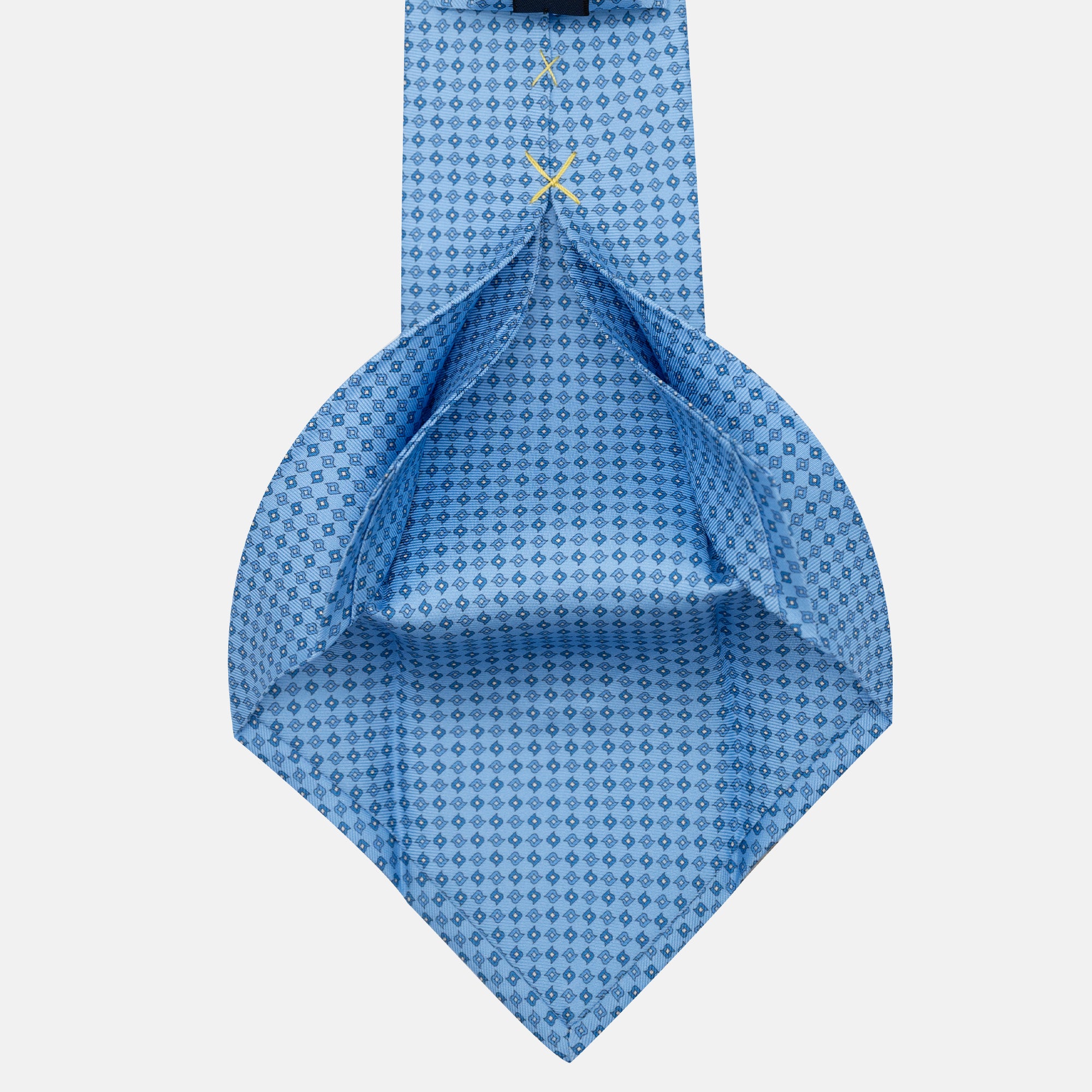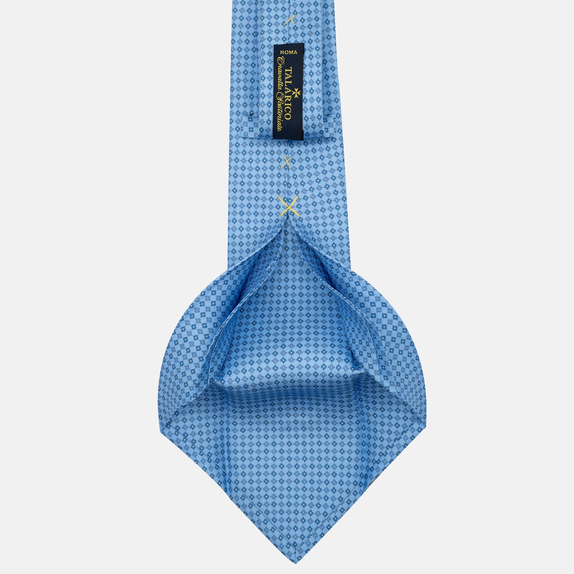 Cravatta 5 pieghe in seta Fantasia Geometrica Celeste - JA056673-5