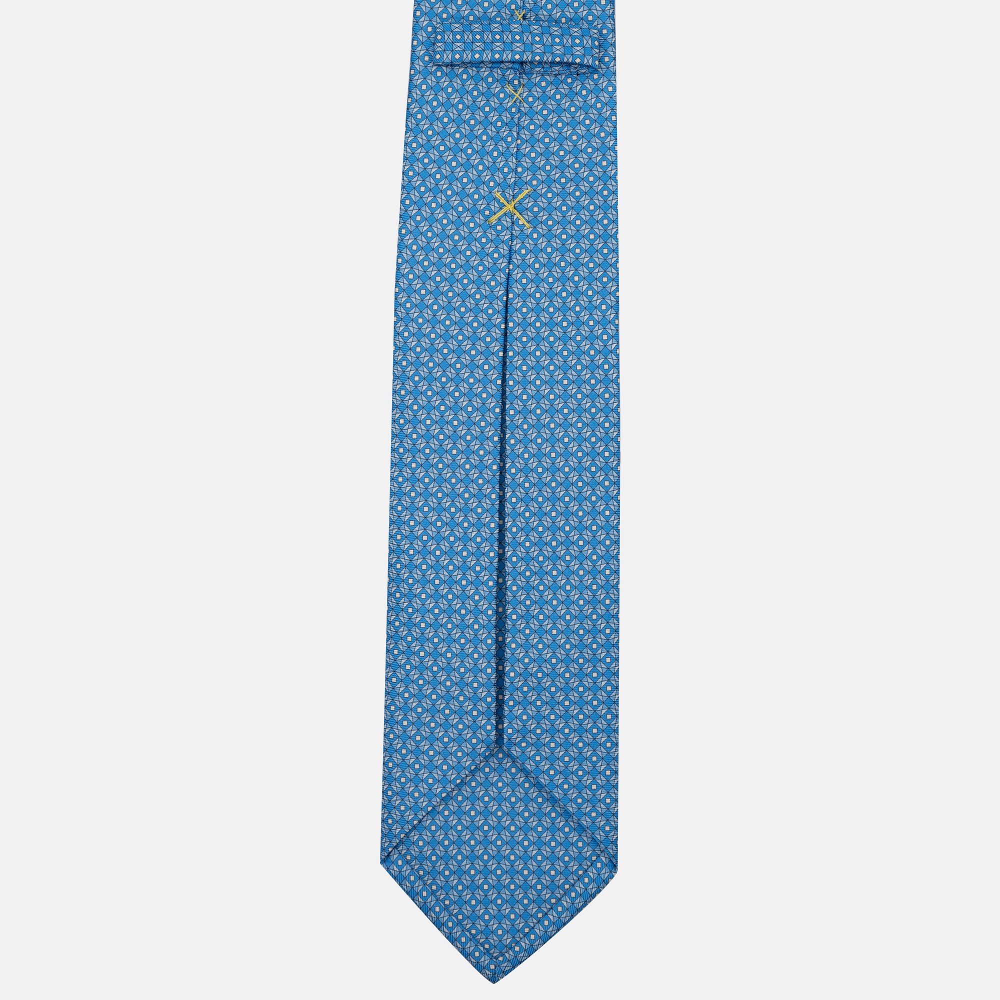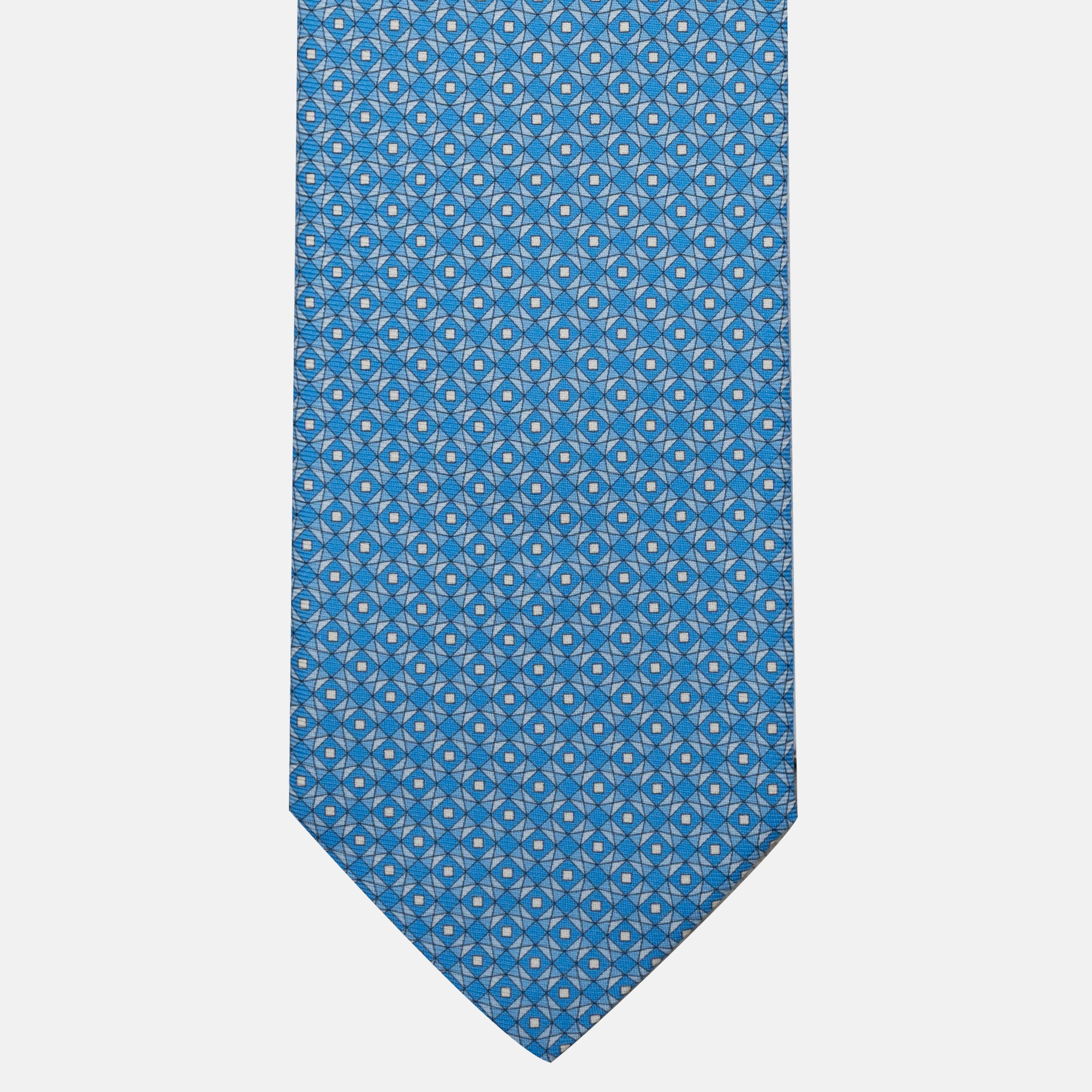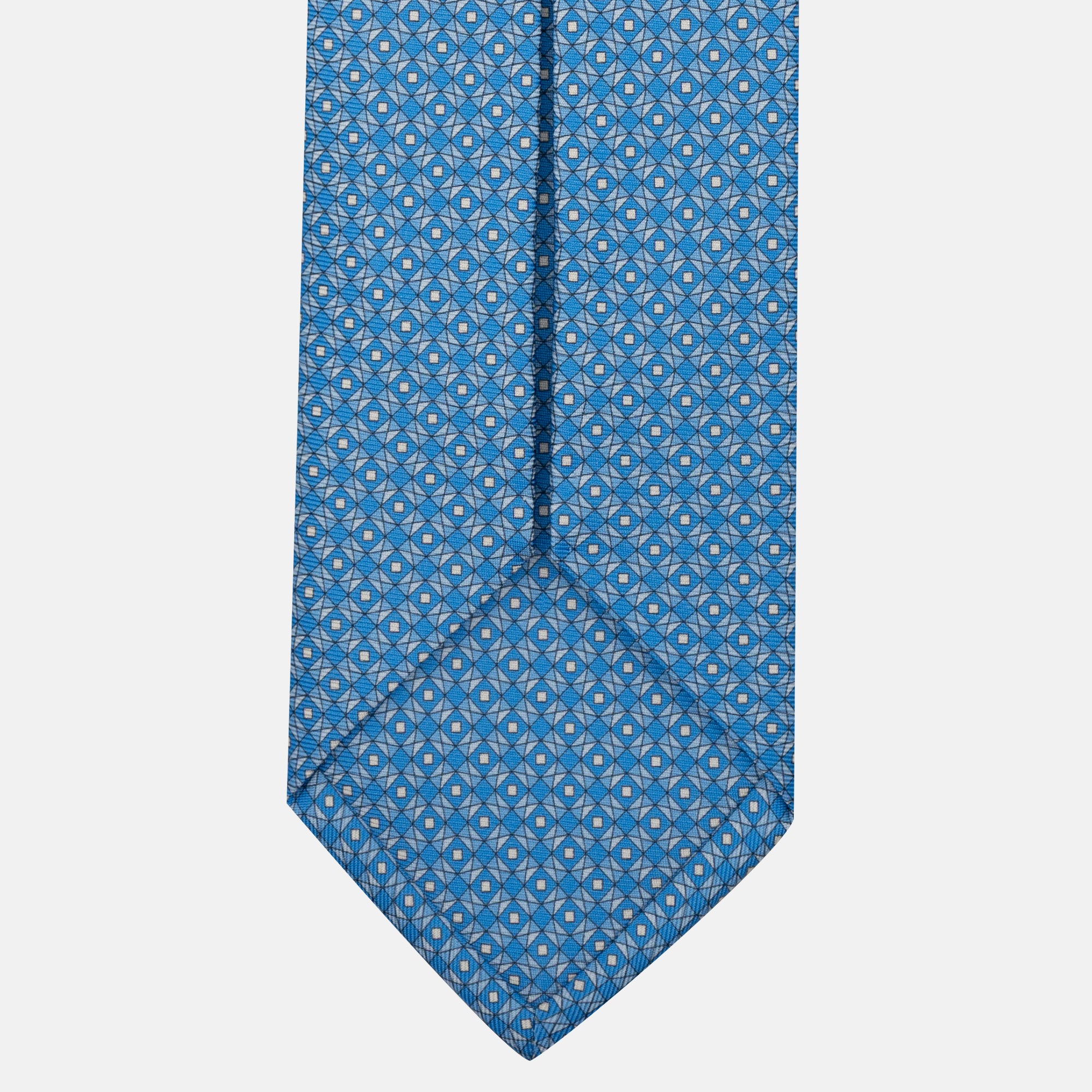 Cravatta 7 pieghe in seta Fantasia Geometrica Celeste - JA055920-3