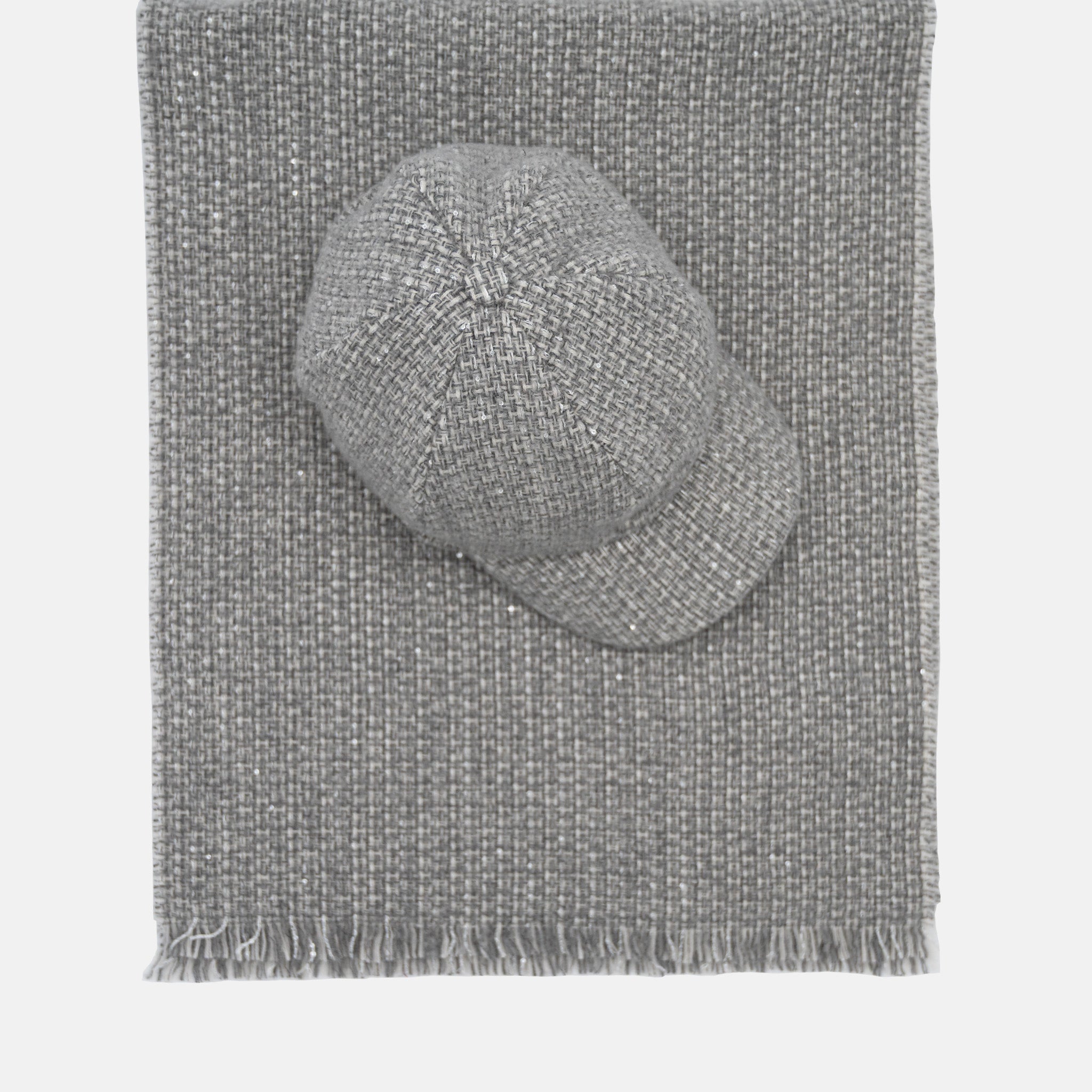 Questo twin set, realizzato in misto cashmere e lana, unisce comfort e stile in due accessori essenziali: un cappello avvolgente e una sciarpa morbida dal design senza tempo.